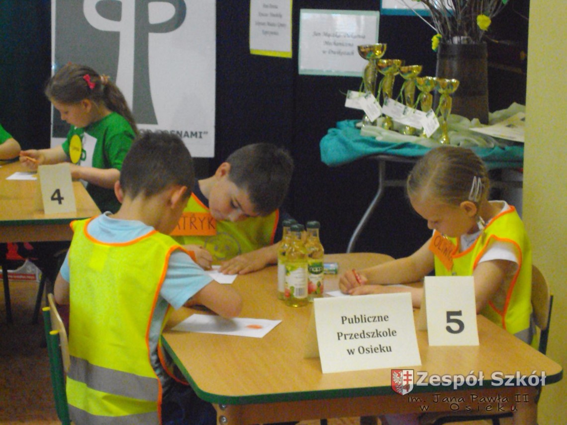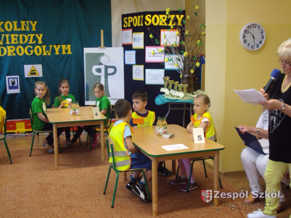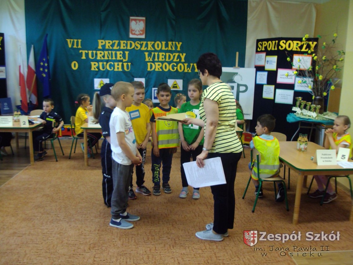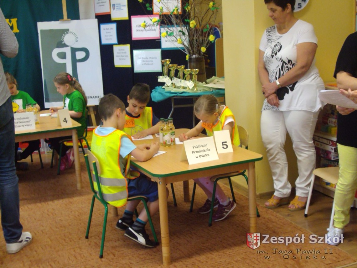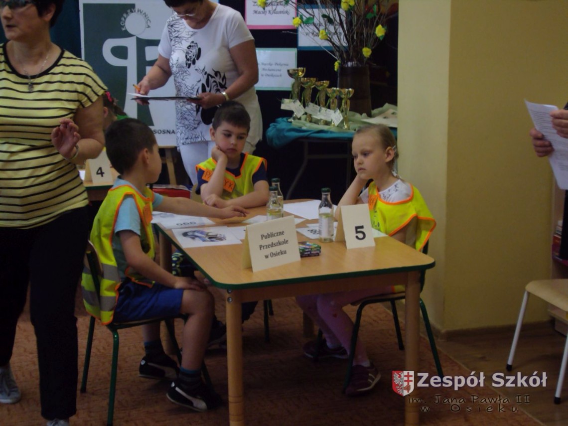 Najwięcej emocji dostarczyło dzieciom zaprezentowanie swoich umiejętności w Mini miasteczku ruchu drogowego. Po uprzednim przygotowaniu się do jazdy uczestnicy musieli właściwie przejechać na rowerku, hulajnodze lub aucie oraz z zastosowaniem przepisów drogowych przejść w wyznaczonych miejscach mini miasteczka. Dzieci biorące udział w Turnieju otrzymały nagrody indywidualne, natomiast wszystkie drużyny otrzymały puchary, dyplomy i nagrody dla placówek.