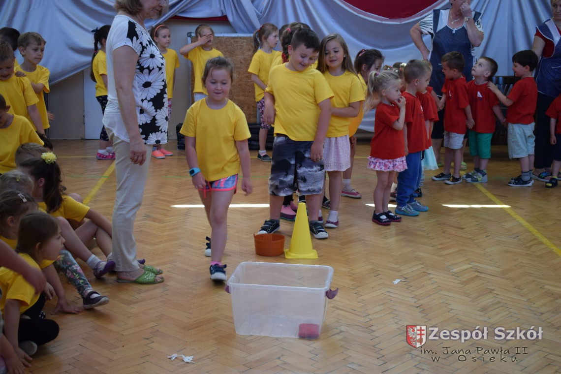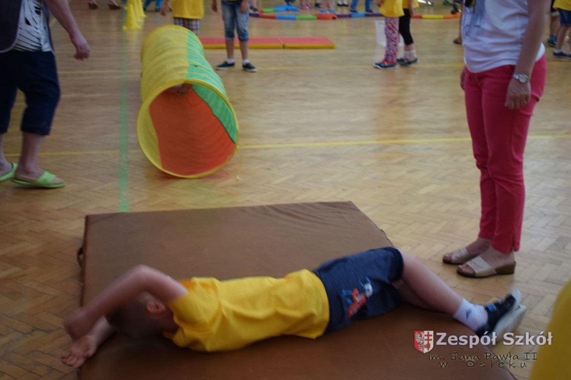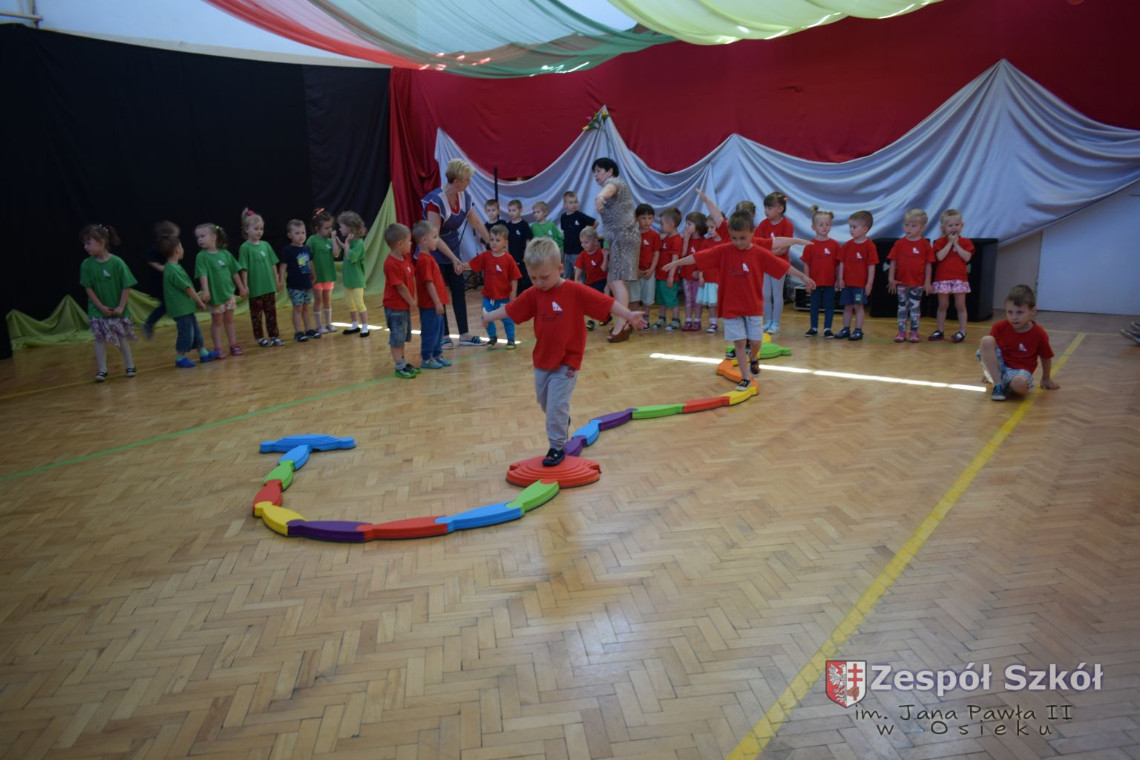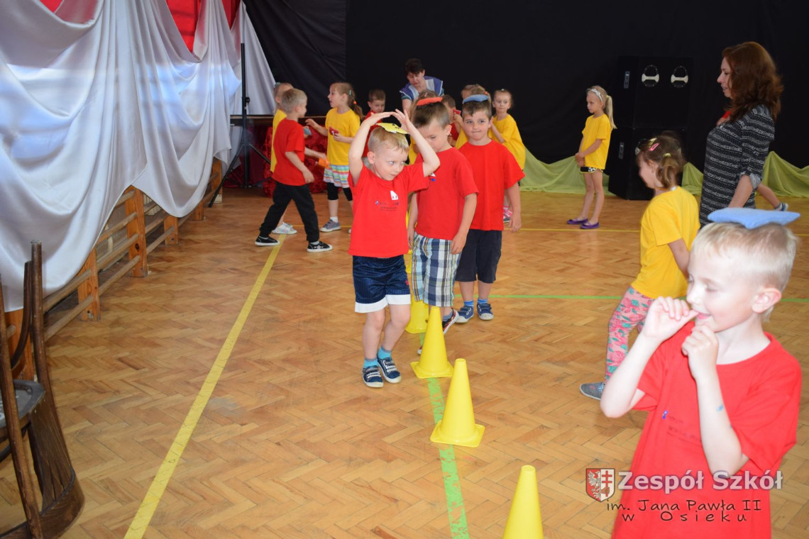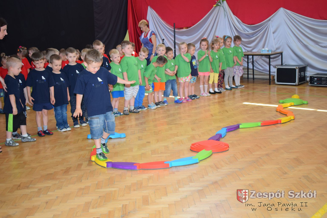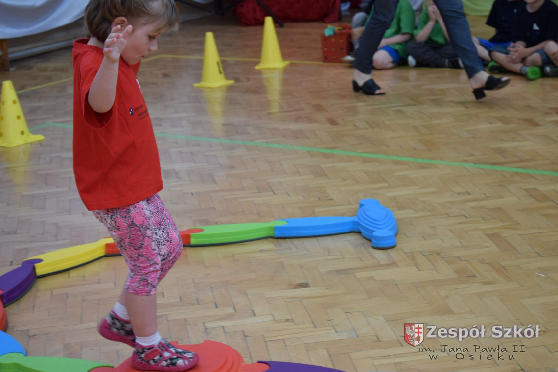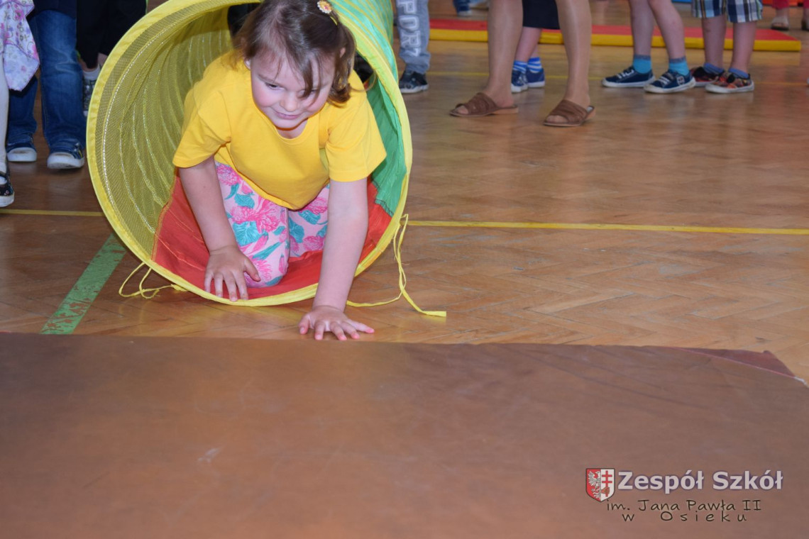 W tym roku z okazji Dnia Dziecka w naszym przedszkolu zostały urządzone dla przedszkolaków rozgrywki sportowe w ramach planu wychowania zdrowotnego „Gimnastyka, ruch to zdrowie – każdy przedszkolak Ci to powie” autorstwa p. Małgorzaty Domagała. Dzieci ze wszystkich grup wiekowych z entuzjazmem i zaangażowaniem pokonywały tory przeszkód, przygotowane przez panie wychowawczynie. Po zakończeniu rozgrywek każda z grup została obdarowana słodyczami.