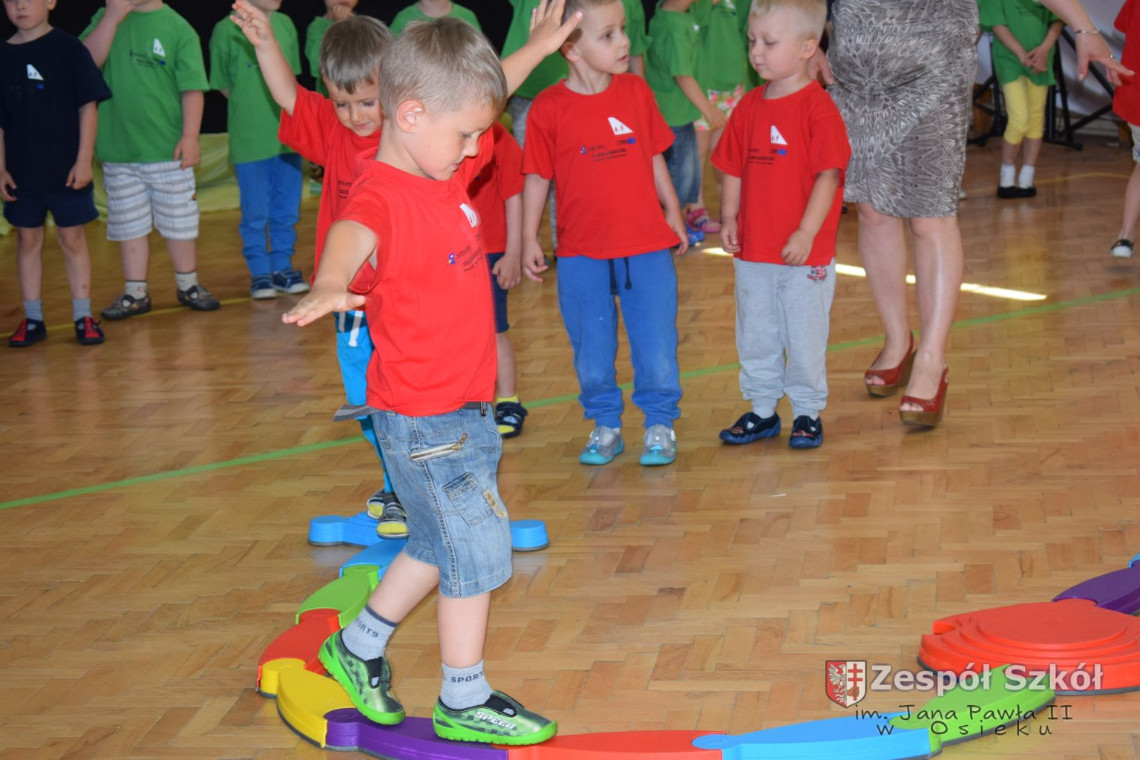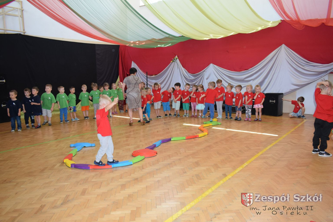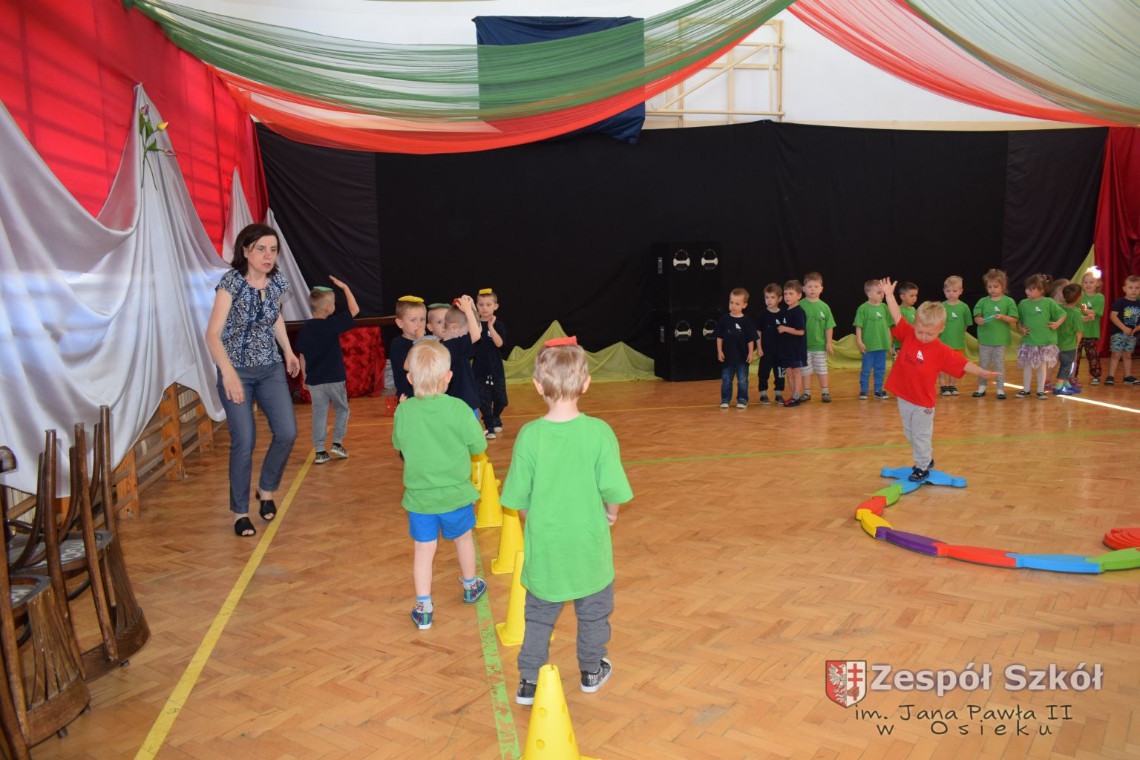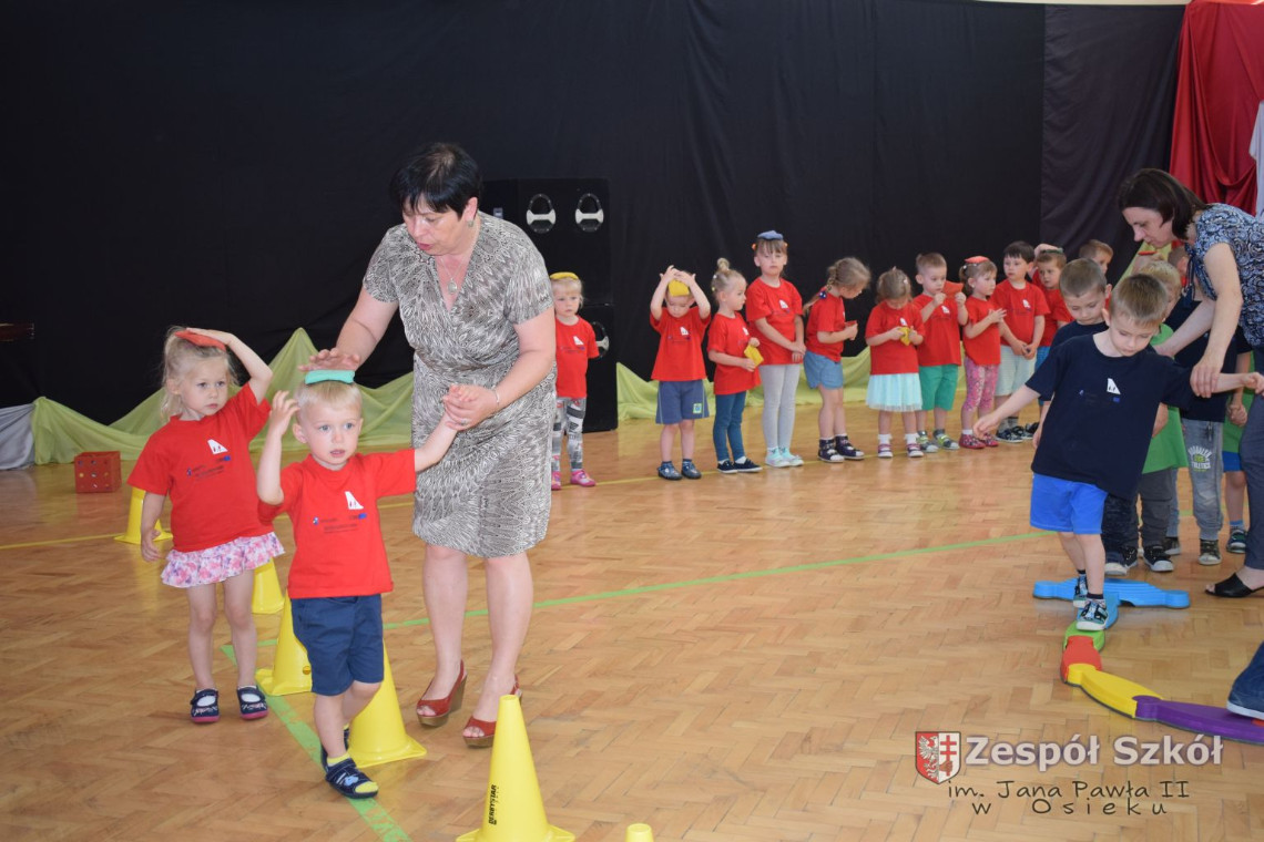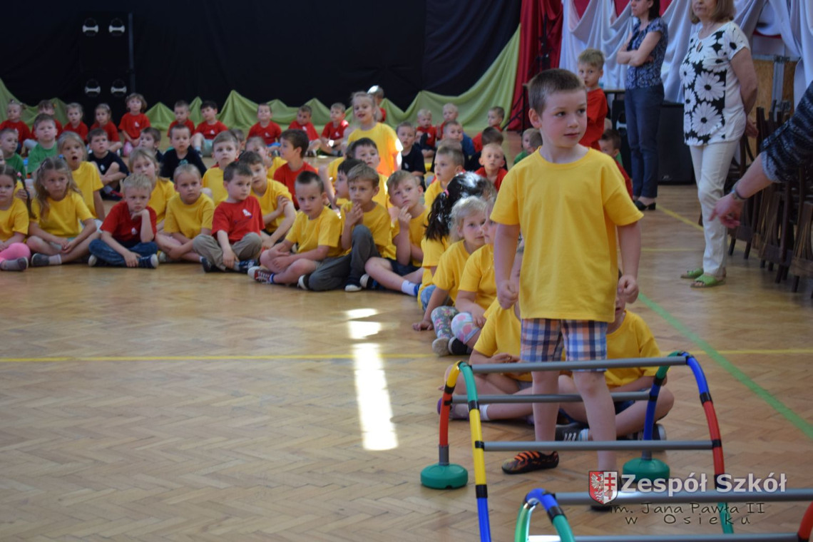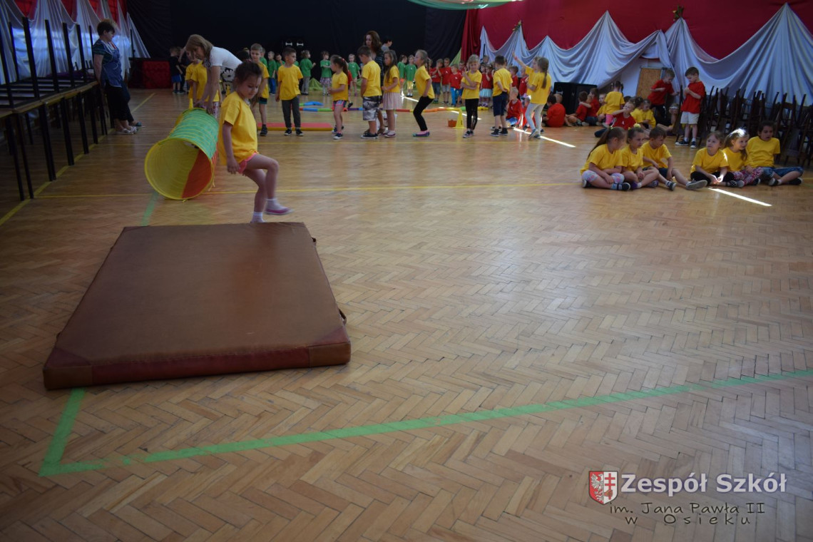 W tym roku z okazji Dnia Dziecka w naszym przedszkolu zostały urządzone dla przedszkolaków rozgrywki sportowe w ramach planu wychowania zdrowotnego „Gimnastyka, ruch to zdrowie – każdy przedszkolak Ci to powie” autorstwa p. Małgorzaty Domagała. Dzieci ze wszystkich grup wiekowych z entuzjazmem i zaangażowaniem pokonywały tory przeszkód, przygotowane przez panie wychowawczynie. Po zakończeniu rozgrywek każda z grup została obdarowana słodyczami.