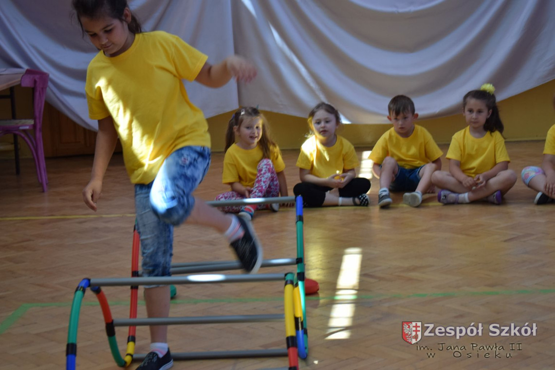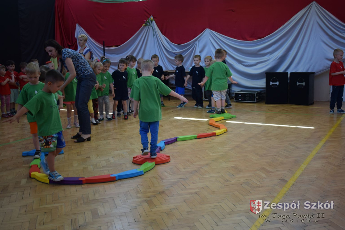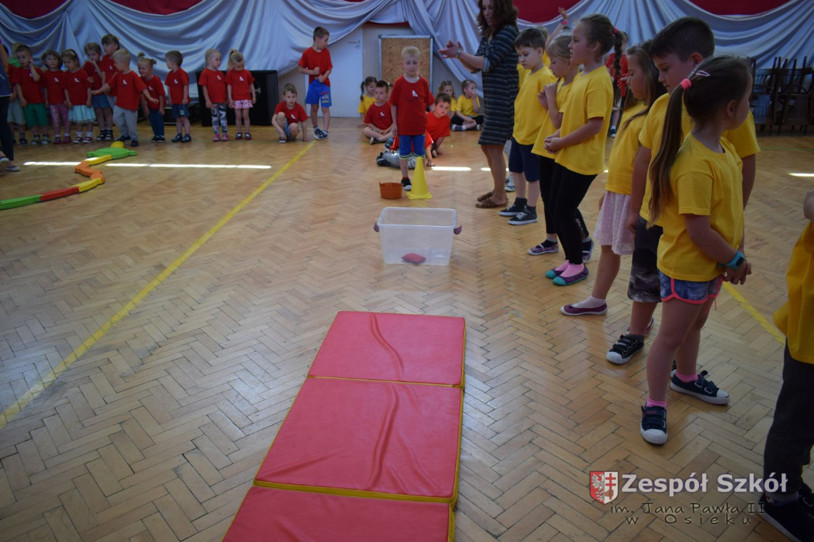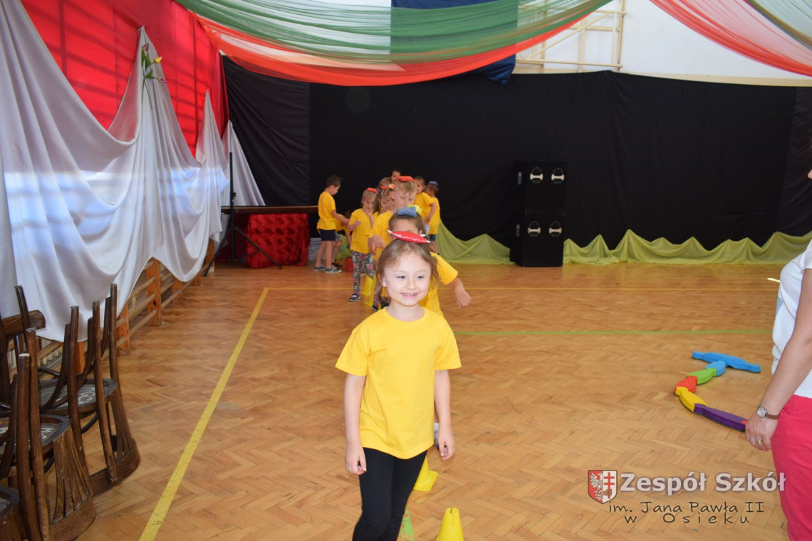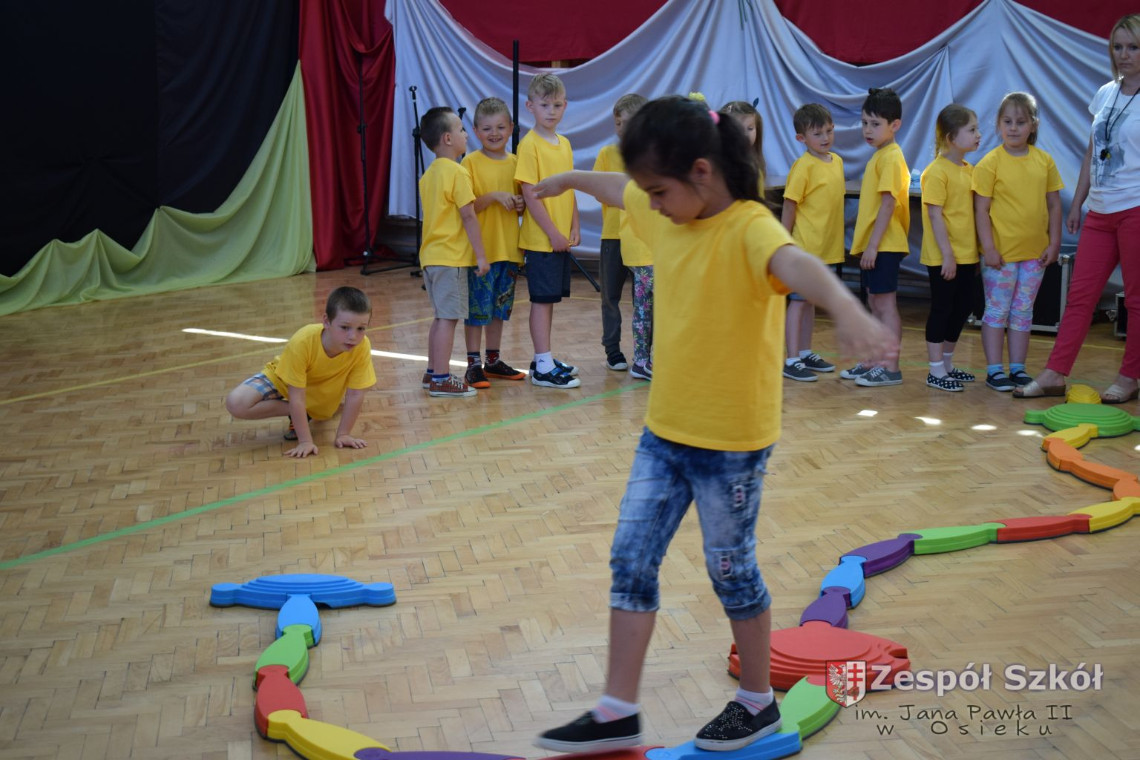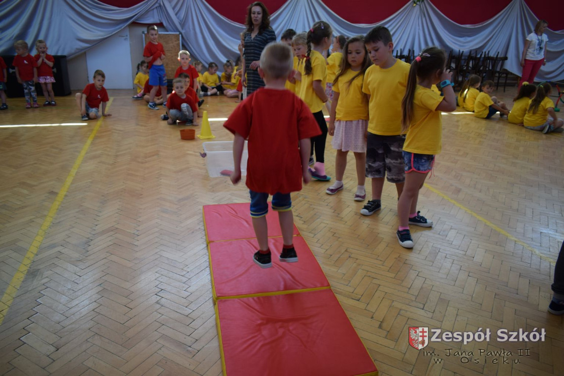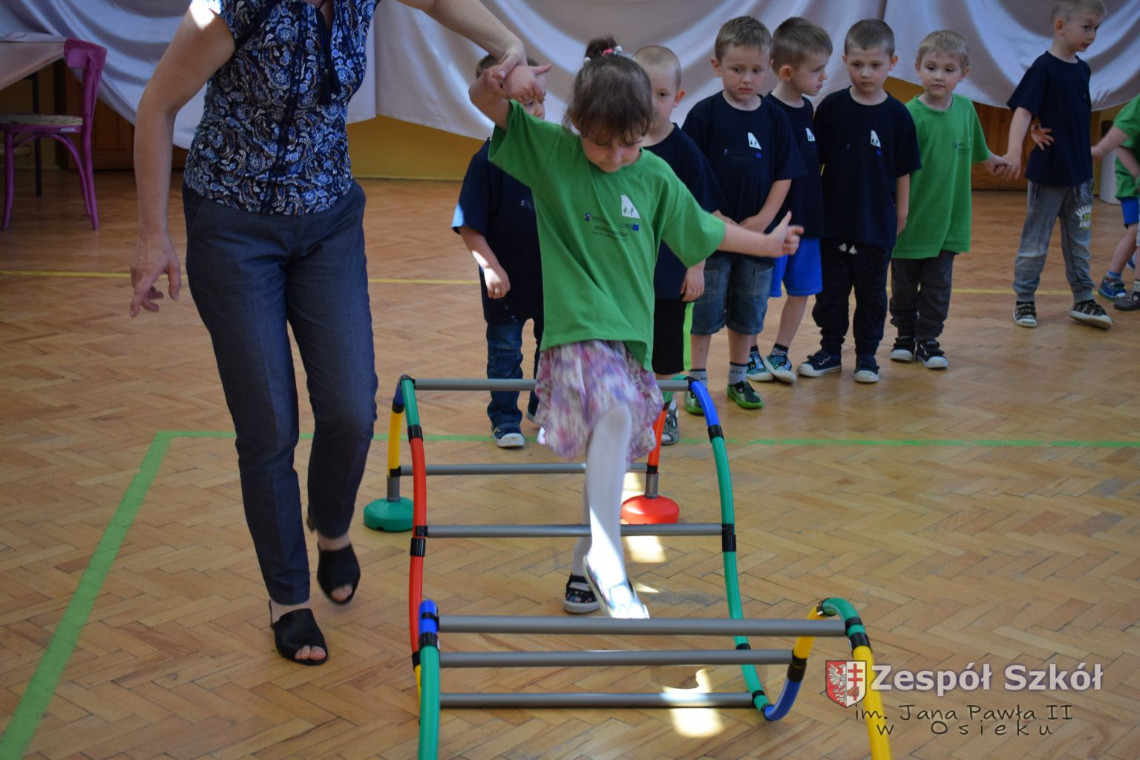 W tym roku z okazji Dnia Dziecka w naszym przedszkolu zostały urządzone dla przedszkolaków rozgrywki sportowe w ramach planu wychowania zdrowotnego „Gimnastyka, ruch to zdrowie – każdy przedszkolak Ci to powie” autorstwa p. Małgorzaty Domagała. Dzieci ze wszystkich grup wiekowych z entuzjazmem i zaangażowaniem pokonywały tory przeszkód, przygotowane przez panie wychowawczynie. Po zakończeniu rozgrywek każda z grup została obdarowana słodyczami.