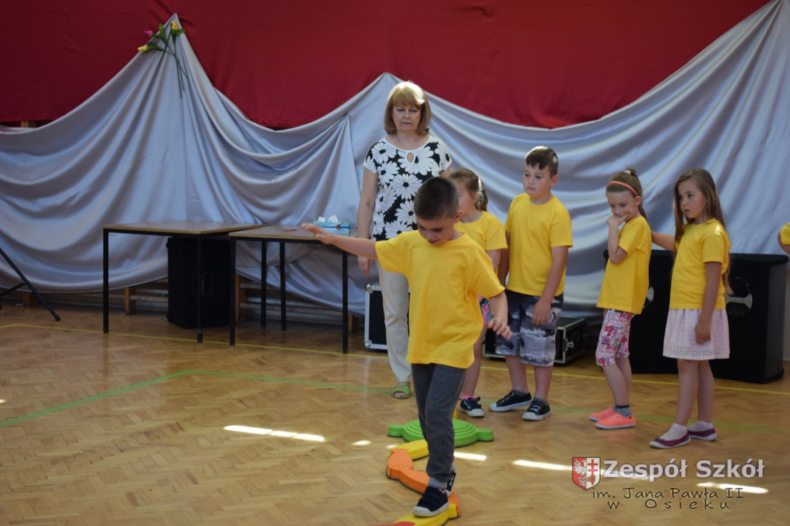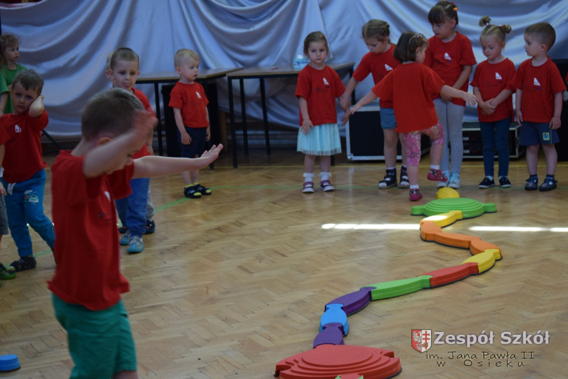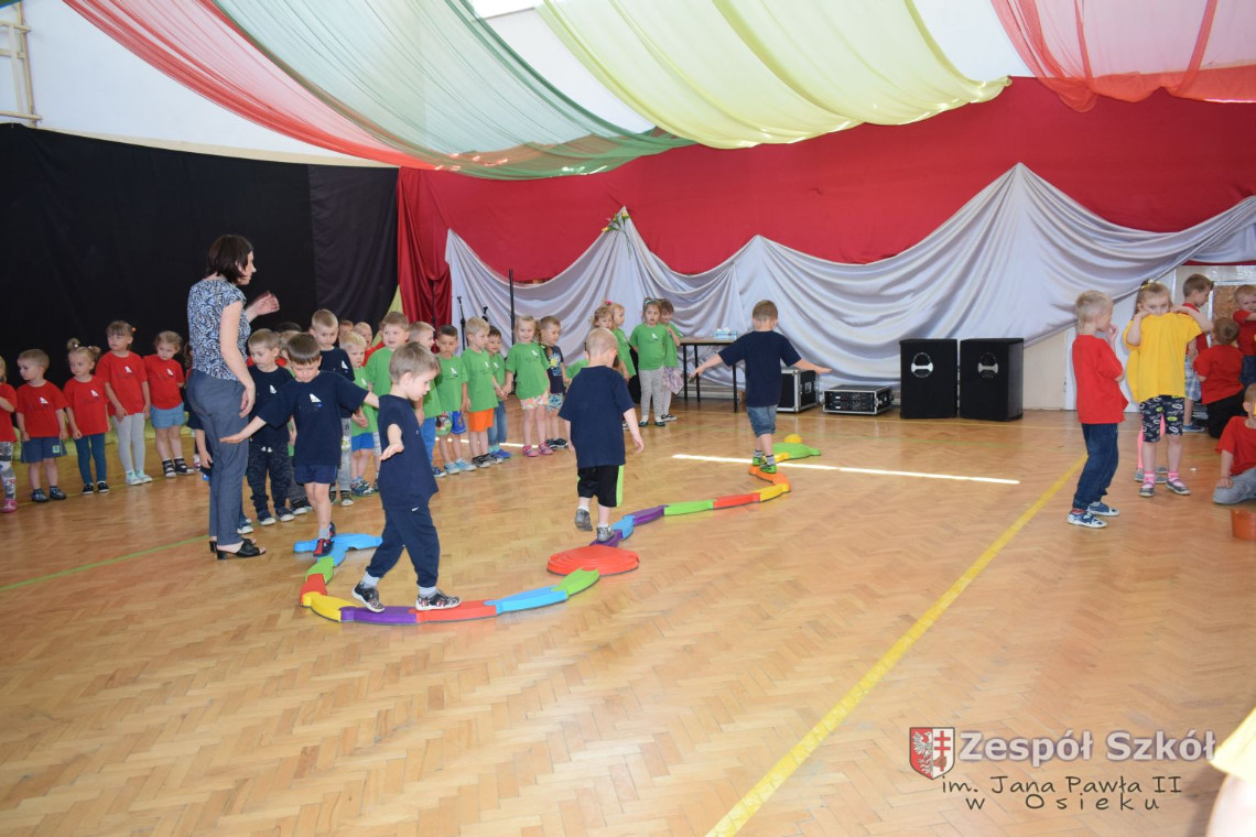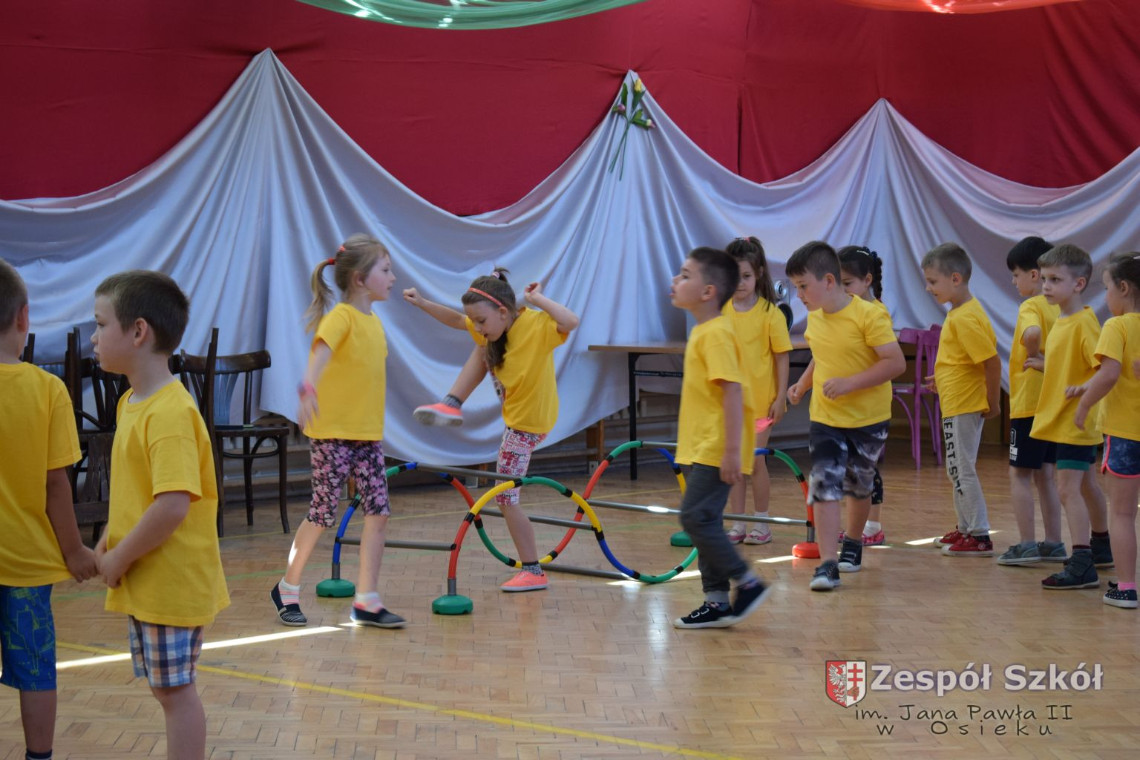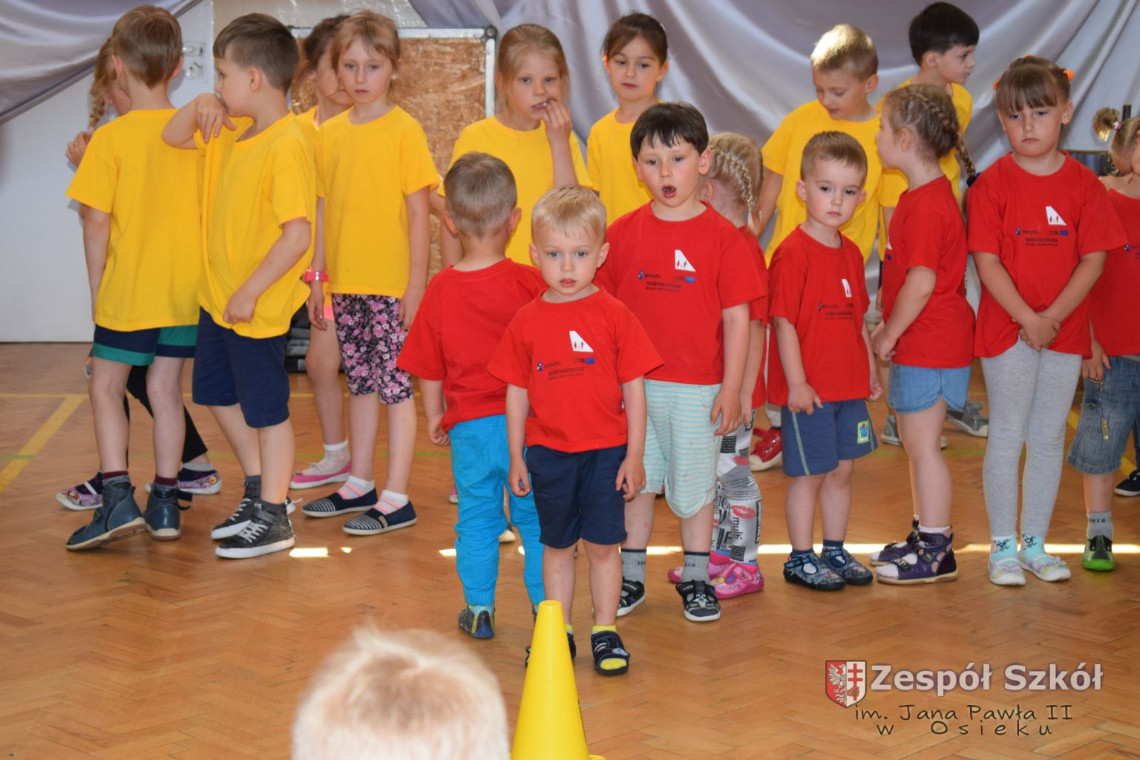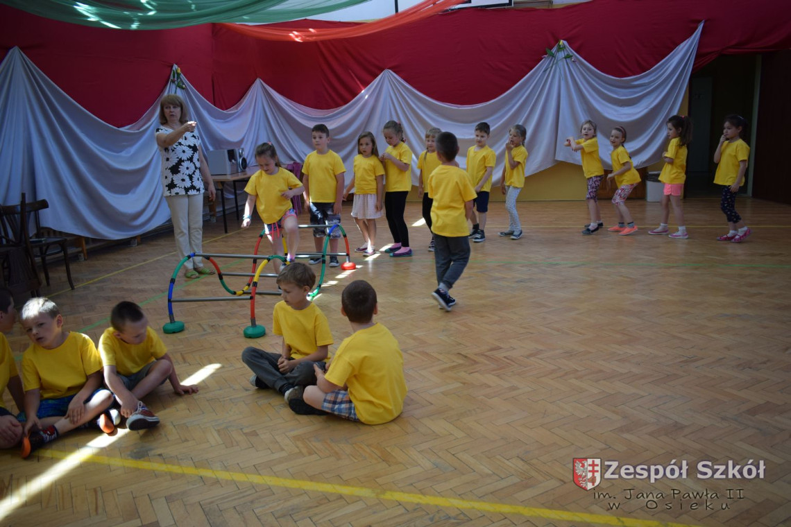 W tym roku z okazji Dnia Dziecka w naszym przedszkolu zostały urządzone dla przedszkolaków rozgrywki sportowe w ramach planu wychowania zdrowotnego „Gimnastyka, ruch to zdrowie – każdy przedszkolak Ci to powie” autorstwa p. Małgorzaty Domagała. Dzieci ze wszystkich grup wiekowych z entuzjazmem i zaangażowaniem pokonywały tory przeszkód, przygotowane przez panie wychowawczynie. Po zakończeniu rozgrywek każda z grup została obdarowana słodyczami.