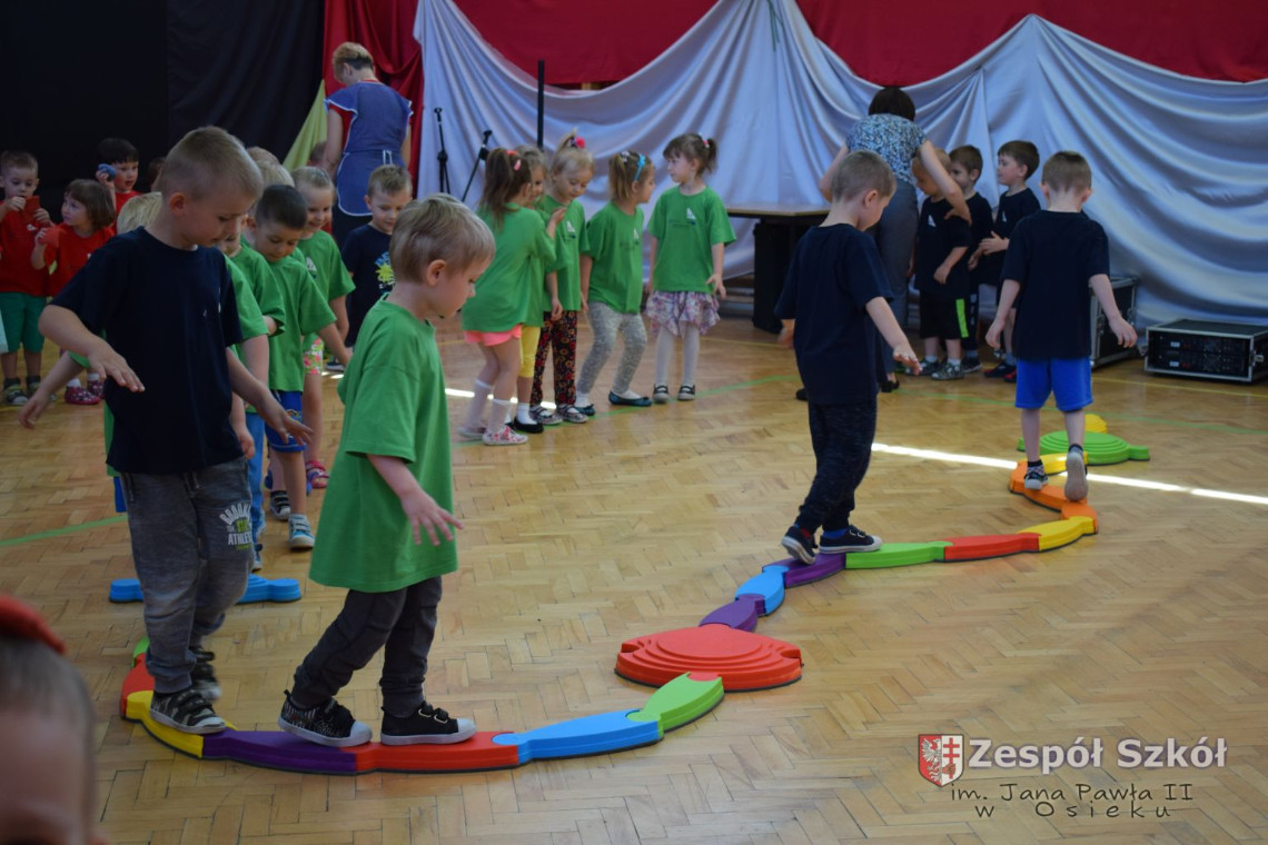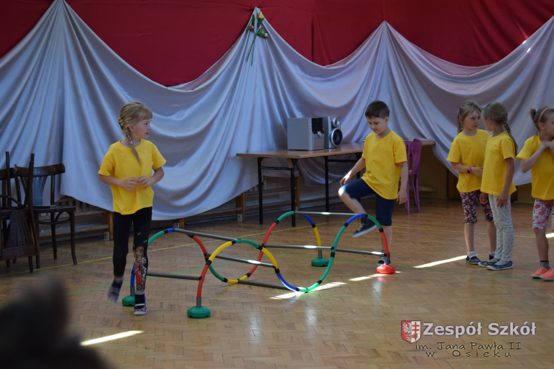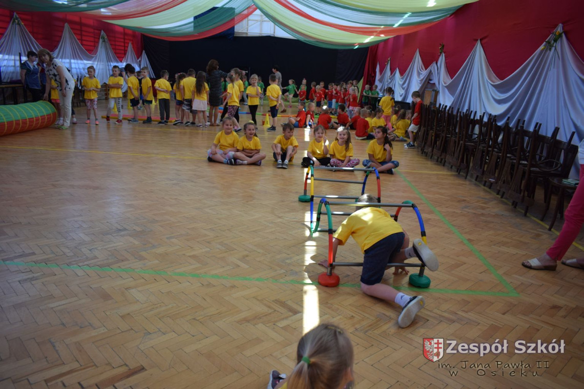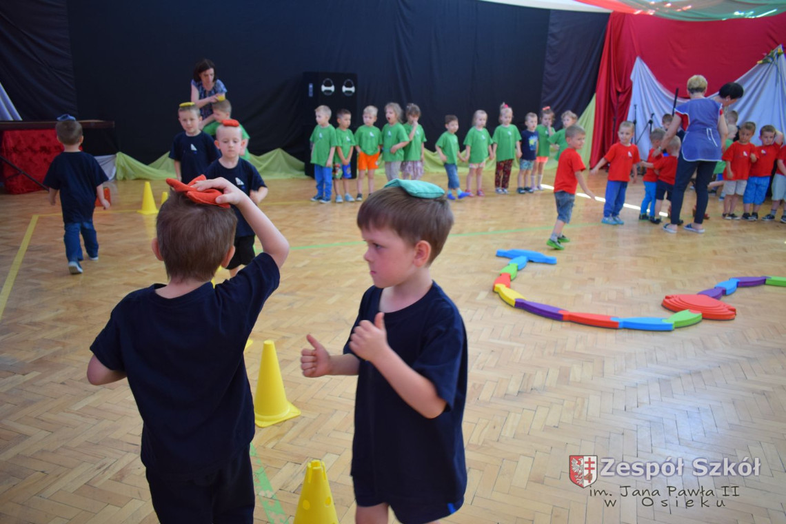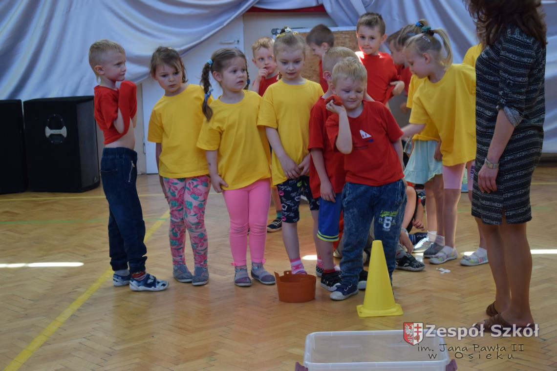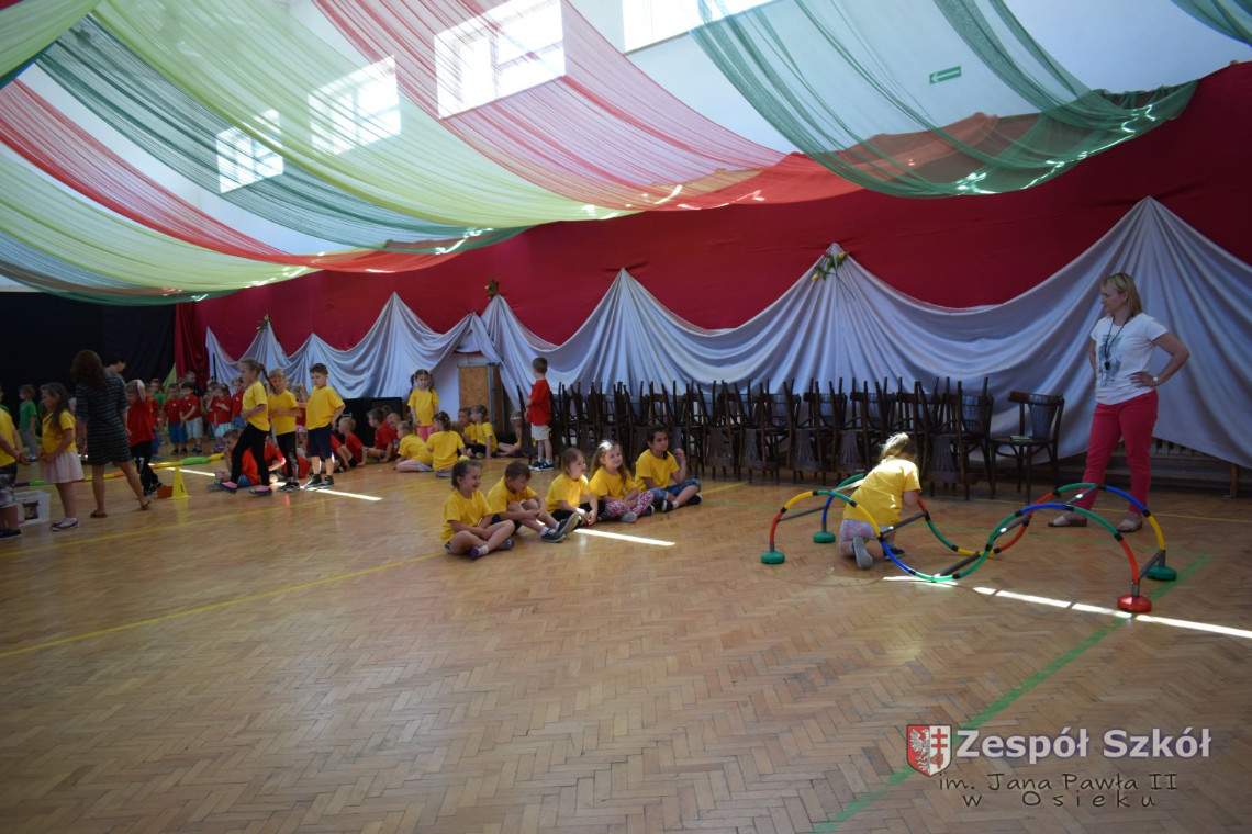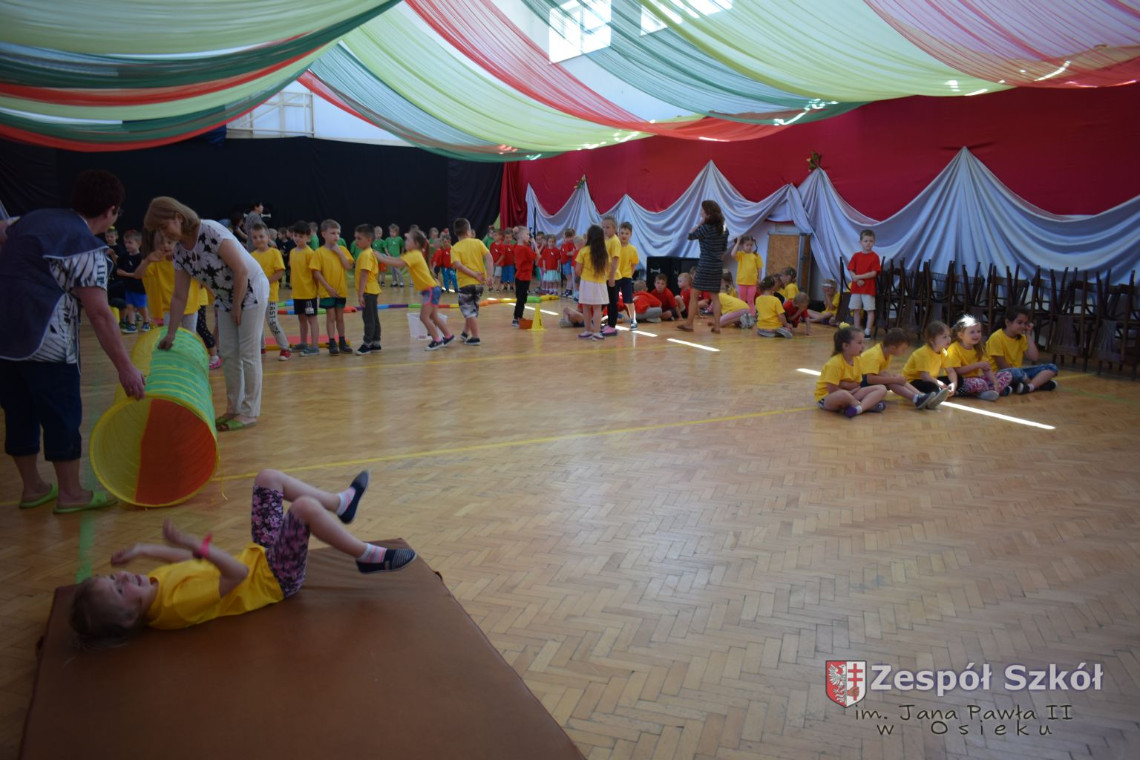 W tym roku z okazji Dnia Dziecka w naszym przedszkolu zostały urządzone dla przedszkolaków rozgrywki sportowe w ramach planu wychowania zdrowotnego „Gimnastyka, ruch to zdrowie – każdy przedszkolak Ci to powie” autorstwa p. Małgorzaty Domagała. Dzieci ze wszystkich grup wiekowych z entuzjazmem i zaangażowaniem pokonywały tory przeszkód, przygotowane przez panie wychowawczynie. Po zakończeniu rozgrywek każda z grup została obdarowana słodyczami.