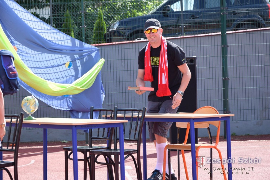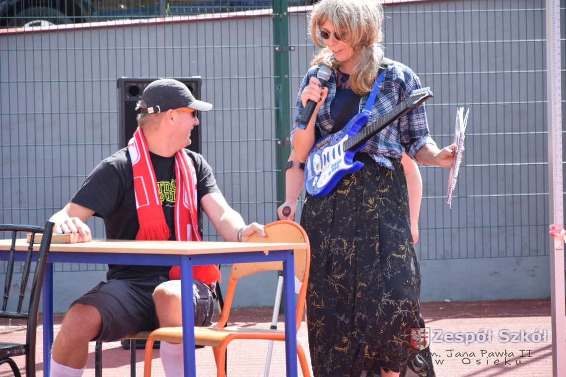 „Piknik Rodzinny” nie mógł obyć się bez akcentu sportowego. Był nim mecz piłki nożnej: uczniowie kontra rodzice. Zgodnie z oczekiwaniami rywalizacja była zacięta i dostarczyła wielu emocji. Natomiast barwnie ubrani kibice głośno dopingowali swoim drużynom. Mecz zakończył się w podstawowym czasie wynikiem 6:6, a w rzutach karnych zwycięstwo odnieśli uczniowie.