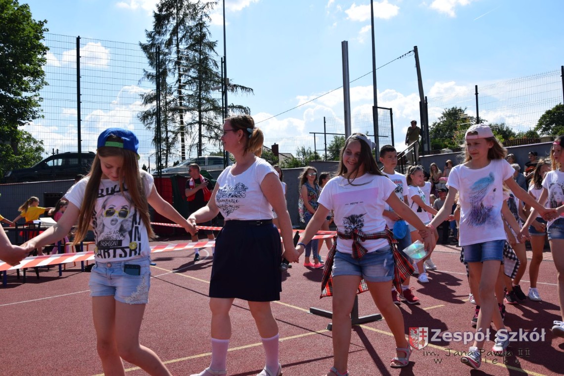 W programie przewidziano wiele ciekawych działań artystycznych, sportowych i konkursów. Wspólną, niepowtarzalną zabawę prowadziły nauczycielki publicznej Szkoły Podstawowej: pani Joanna Gach i pani Magdalena Pisarska oraz przewodnicząca Rady Rodziców pani Elżbieta Okoń.