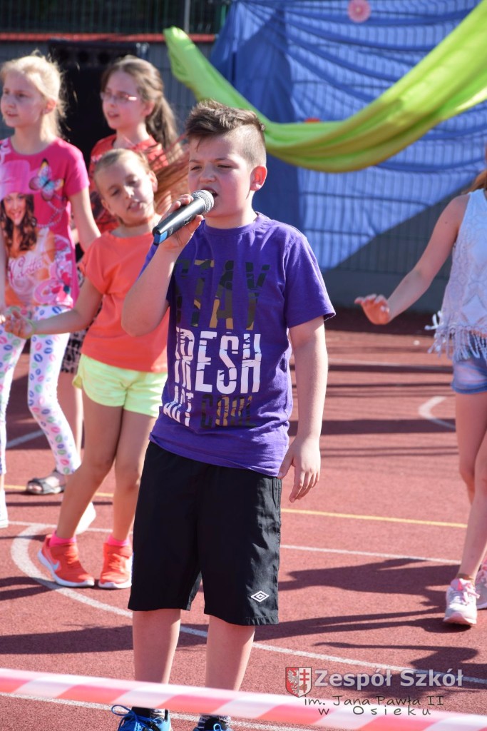 Profesjonalnie przygotowane występy w wykonaniu uczniów wszystkich klas szkoły podstawowej wywoływały uśmiech na twarzach uczestników pikniku – zarówno widzów, jak i występujących. Mogliśmy podziwiać małych artystów w występach wokalnych: klasa I zaprezentowała piosenkę: „Bo wszyscy uczniowie, to jedna rodzina”, klasa IIa - piosenkę „To dzięki Wam”, Martyna Jankowska z klasy IIIb zaśpiewała piosenkę „Tyle słońca w całym mieście”, Ksawery Glica - utwory: „Moja klasa IIIc” i „Zimny drań”, Karolina Łysiak - piosenkę „Give Me”, a Klaudia Kucwaj i Julia Suliborska z klasy VI – utwór „Ty i ja” . Natomiast uczniowie klasy IVa brawurowo przygotowali pokaz wokalno – taneczny „Tamta dziewczyna”.