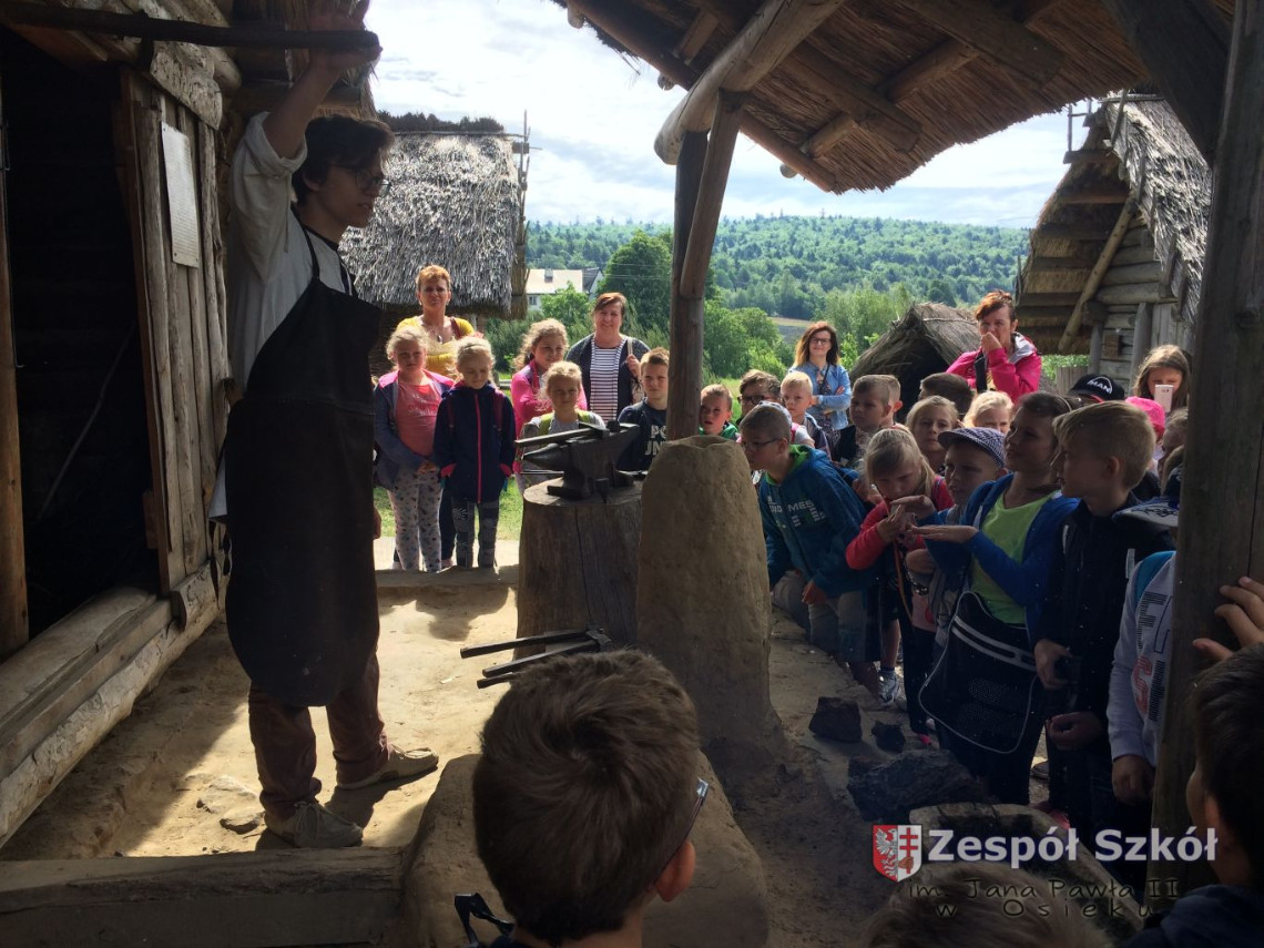 Po przekroczeniu bramy Osady Średniowiecznej uczestnicy wycieczki podziwiali odległą przeszłość i życie mieszkańców w dawnych czasach. Uczniowie brali udział w warsztatach rymarskich, tkackich, garncarskich oraz poznali pracę kowala. Następnie odwiedzili Baby-Jagowo, gdzie spotkali bajkowe elementy i postacie m. in. Domek Jasia i Małgosi, łódź Wikingów i duży plac zabaw oraz tunel strachu. Jadąc kolejką podziwiali Świętokrzyski Park Narodowy oraz zwiedzili Klasztor Misjonarzy Oblatów i Sanktuarium Relikwii Krzyża Świętego. Uczniowie pełni wrażeń, wspomnień wrócili do domów.