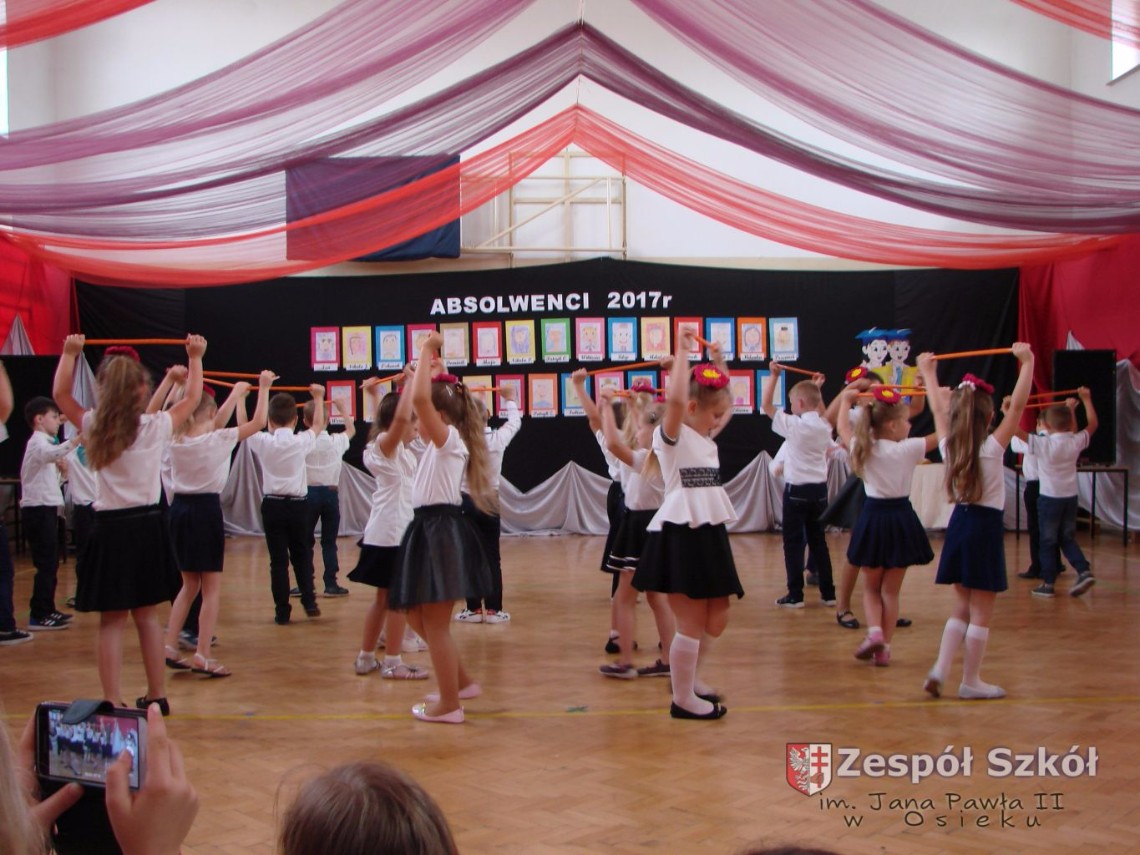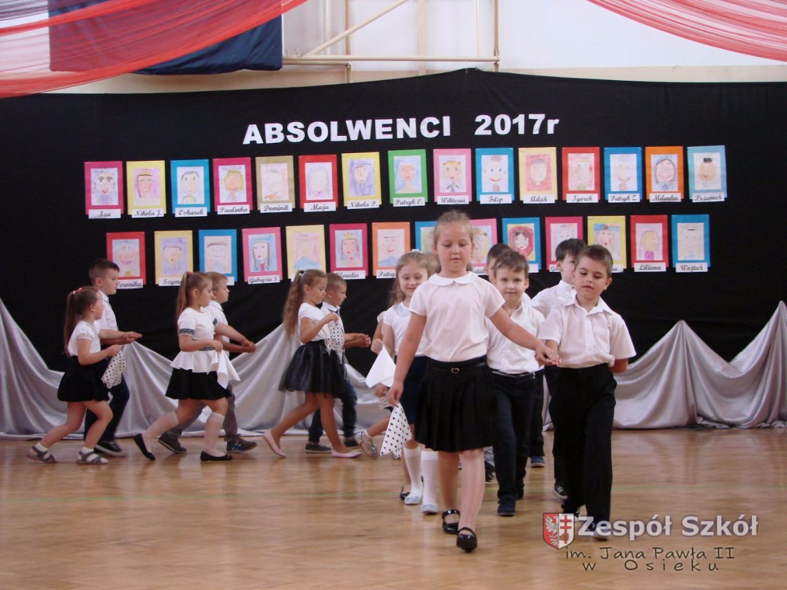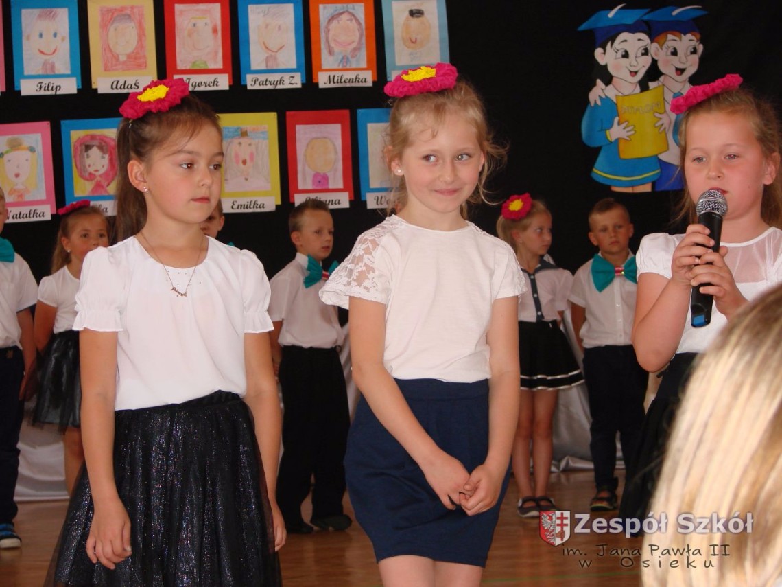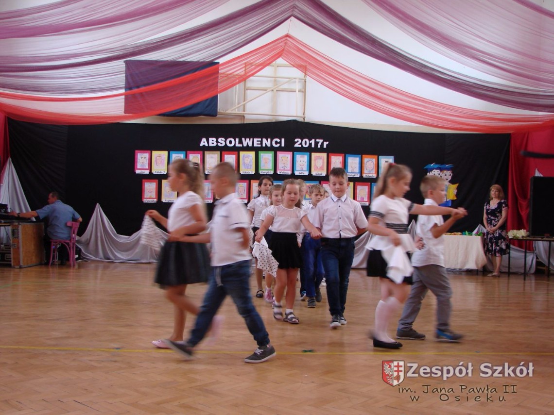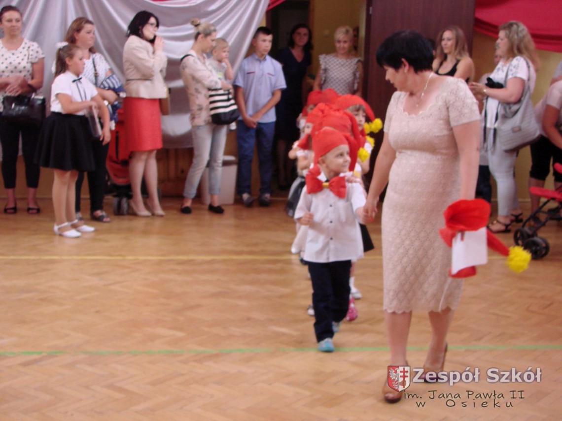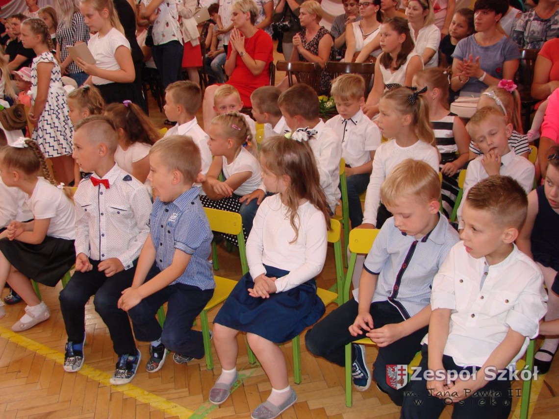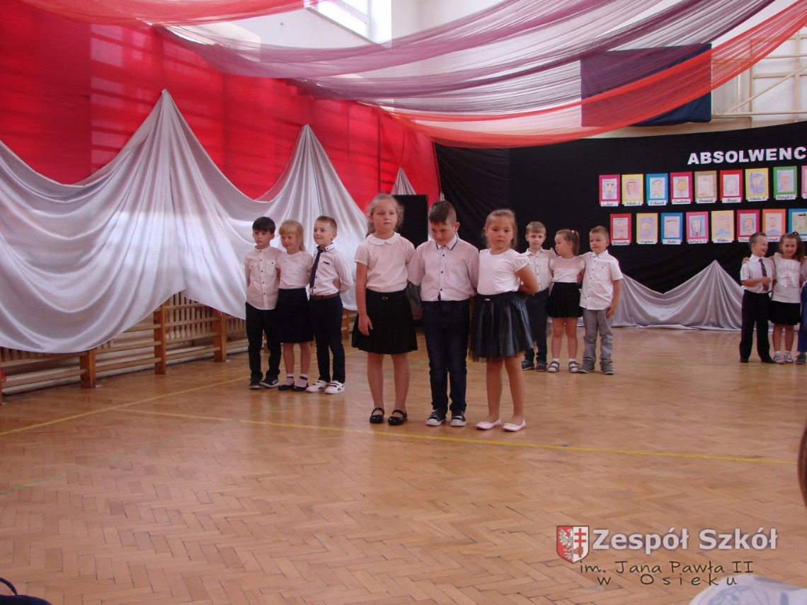 Uroczystość rozpoczęła dyrektor Zespołu Szkół im. Jana Pawła II Małgorzata Kunowska. Najstarsze dzieci 6- latki A i B przygotowane przez wychowawczynie Alicję Błąk i Magdalenę Kos przedstawiły pożegnalny program artystyczny, prezentując wiersze, tańce i piosenki. Dzieci 3,4,5 -letnie zaprezentowały układy wokalno- taneczne.