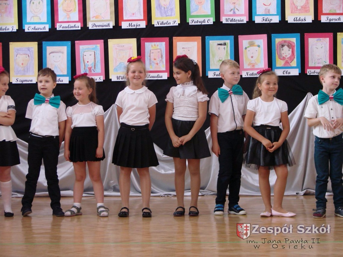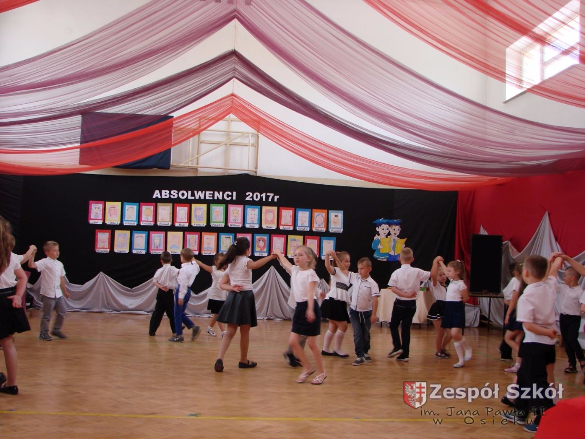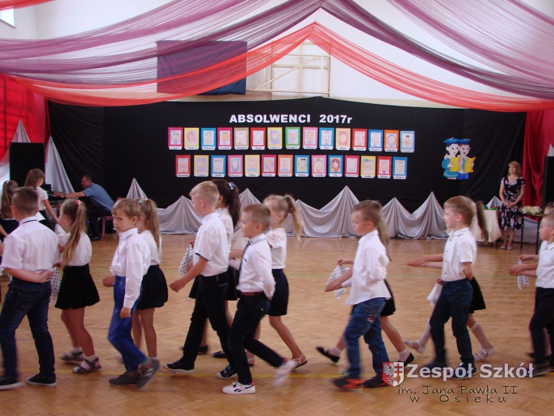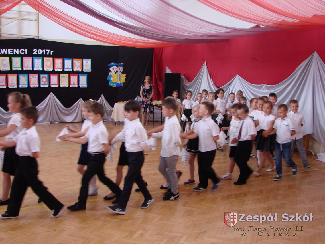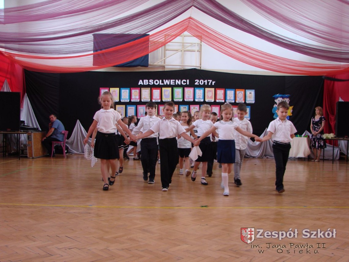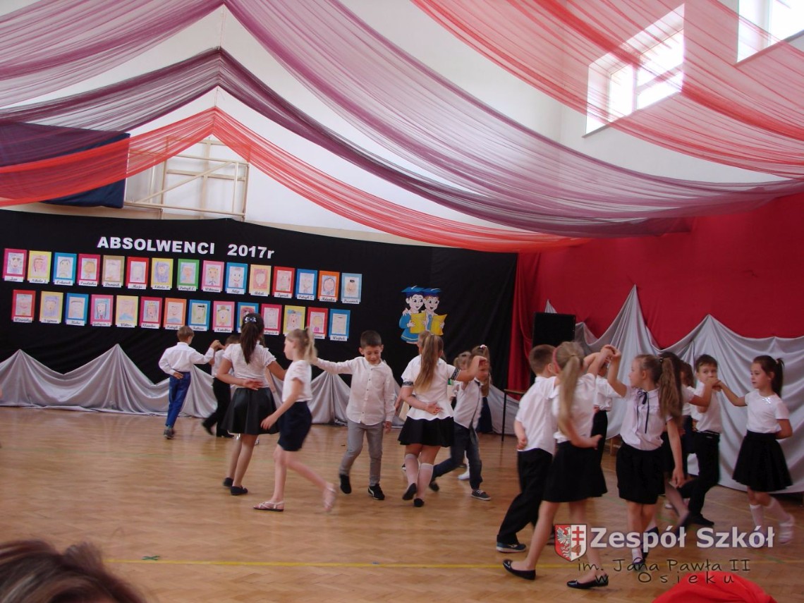 Uroczystość rozpoczęła dyrektor Zespołu Szkół im. Jana Pawła II Małgorzata Kunowska. Najstarsze dzieci 6- latki A i B przygotowane przez wychowawczynie Alicję Błąk i Magdalenę Kos przedstawiły pożegnalny program artystyczny, prezentując wiersze, tańce i piosenki. Dzieci 3,4,5 -letnie zaprezentowały układy wokalno- taneczne.