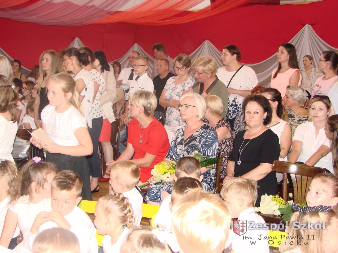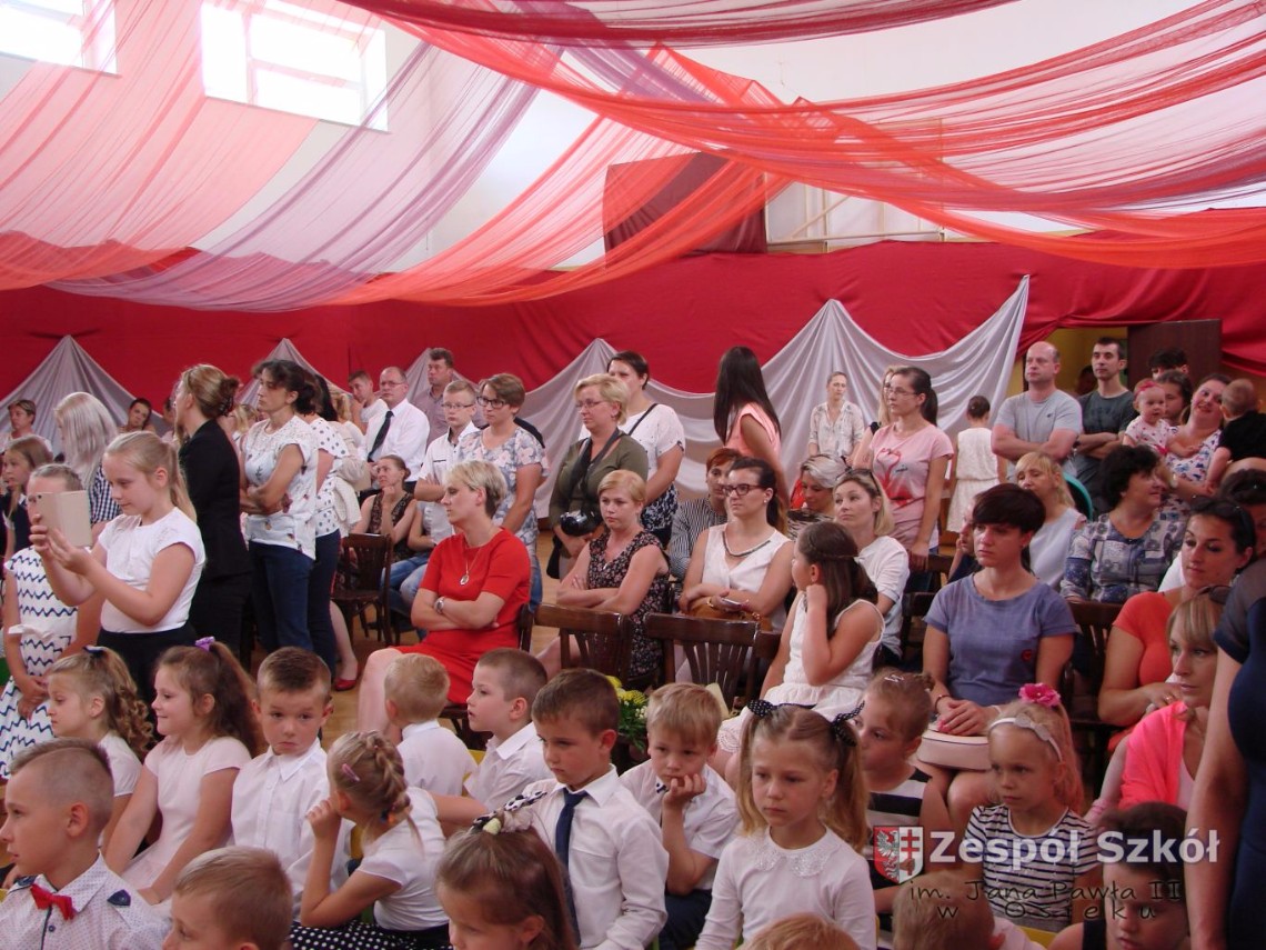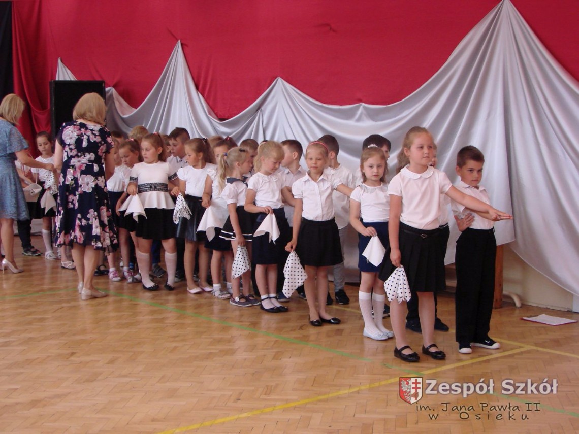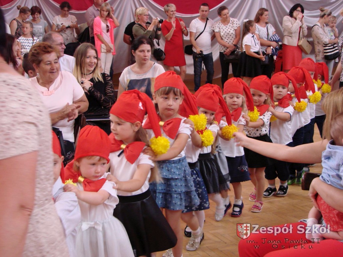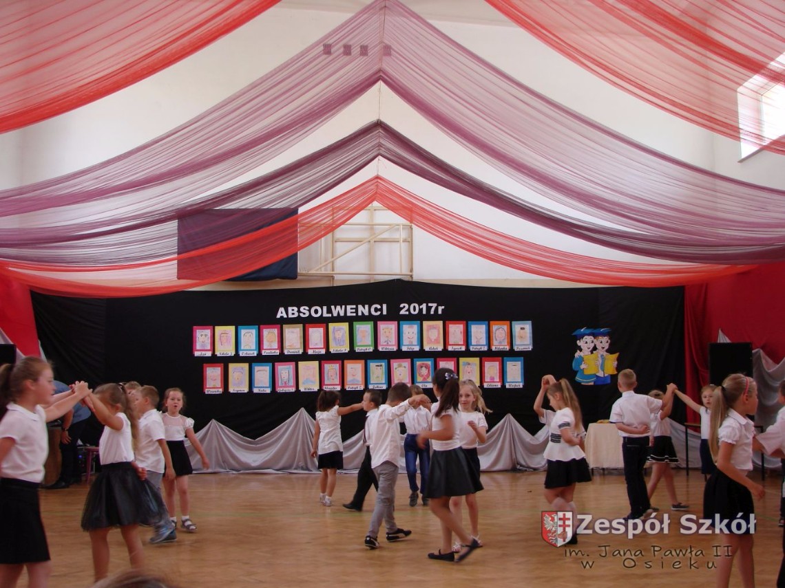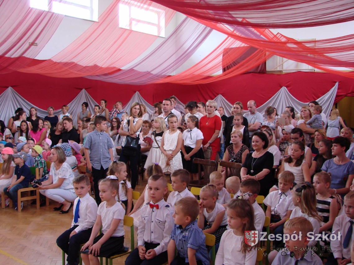 Uroczystość rozpoczęła dyrektor Zespołu Szkół im. Jana Pawła II Małgorzata Kunowska. Najstarsze dzieci 6- latki A i B przygotowane przez wychowawczynie Alicję Błąk i Magdalenę Kos przedstawiły pożegnalny program artystyczny, prezentując wiersze, tańce i piosenki. Dzieci 3,4,5 -letnie zaprezentowały układy wokalno- taneczne.