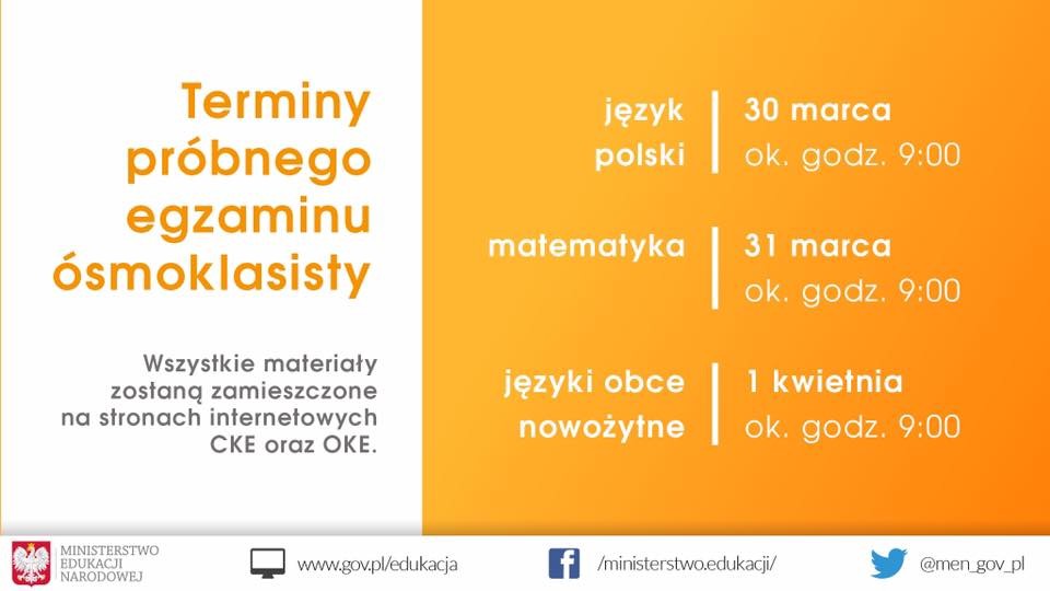 - 31 marca br. (wtorek), ok. godz. 9:00 – matematyka;