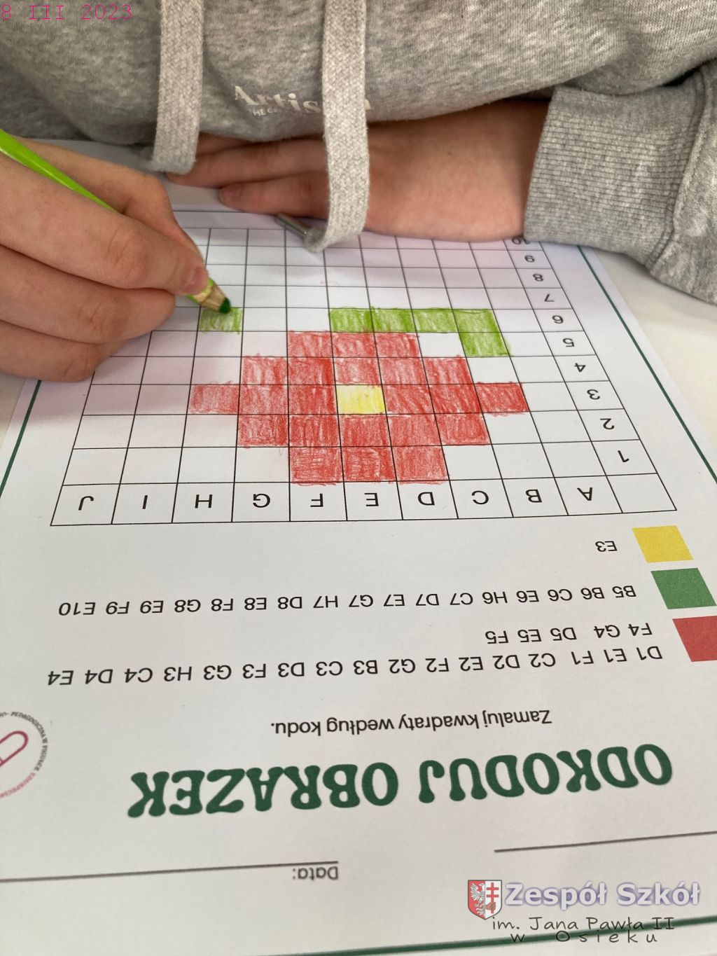 - Odkoduj rysunek – zamalowywanie kwadratów według kodu.