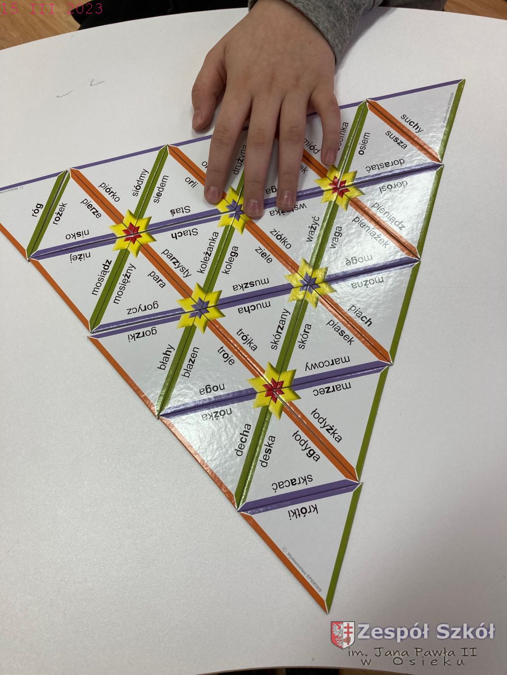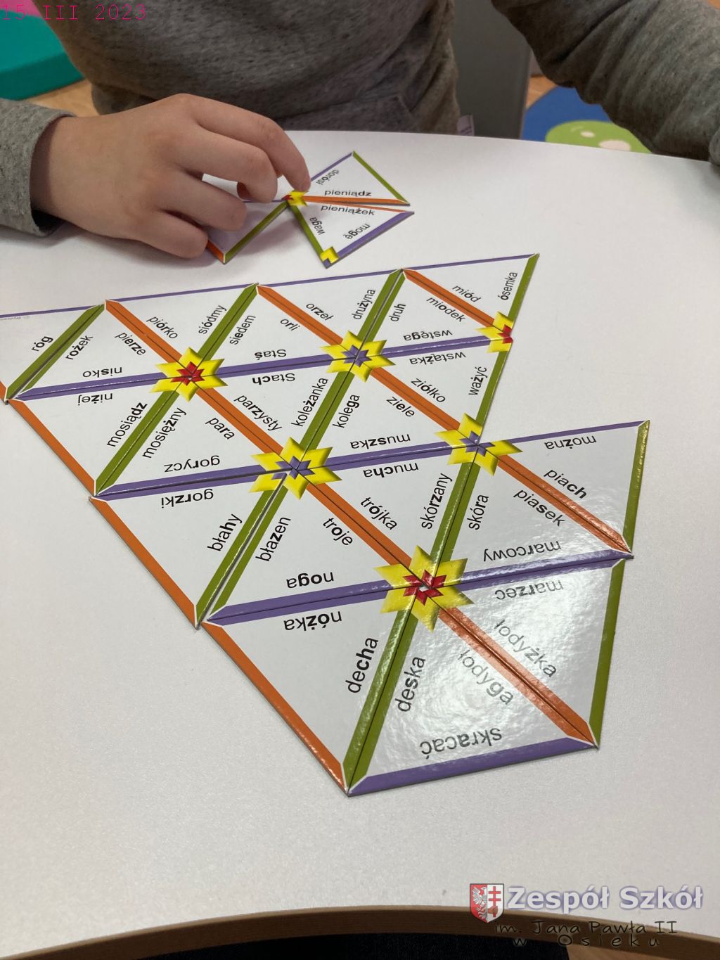 W gabinecie zajęć specjalistycznych odbyły się zajęcia rewalidacyjne, których celem było rozwijanie zdolności do myślenia i zapamiętywania, uczenie wytrwałości, wzmacnianie koncentracji, pomaganie w przezwyciężaniu trudności w uczeniu się. Na zajęciach wykorzystano piramidę ortograficzną czyli układankę i jednocześnie grę edukacyjną w celu utrwalania znajomości zasad ortografii języka polskiego.
