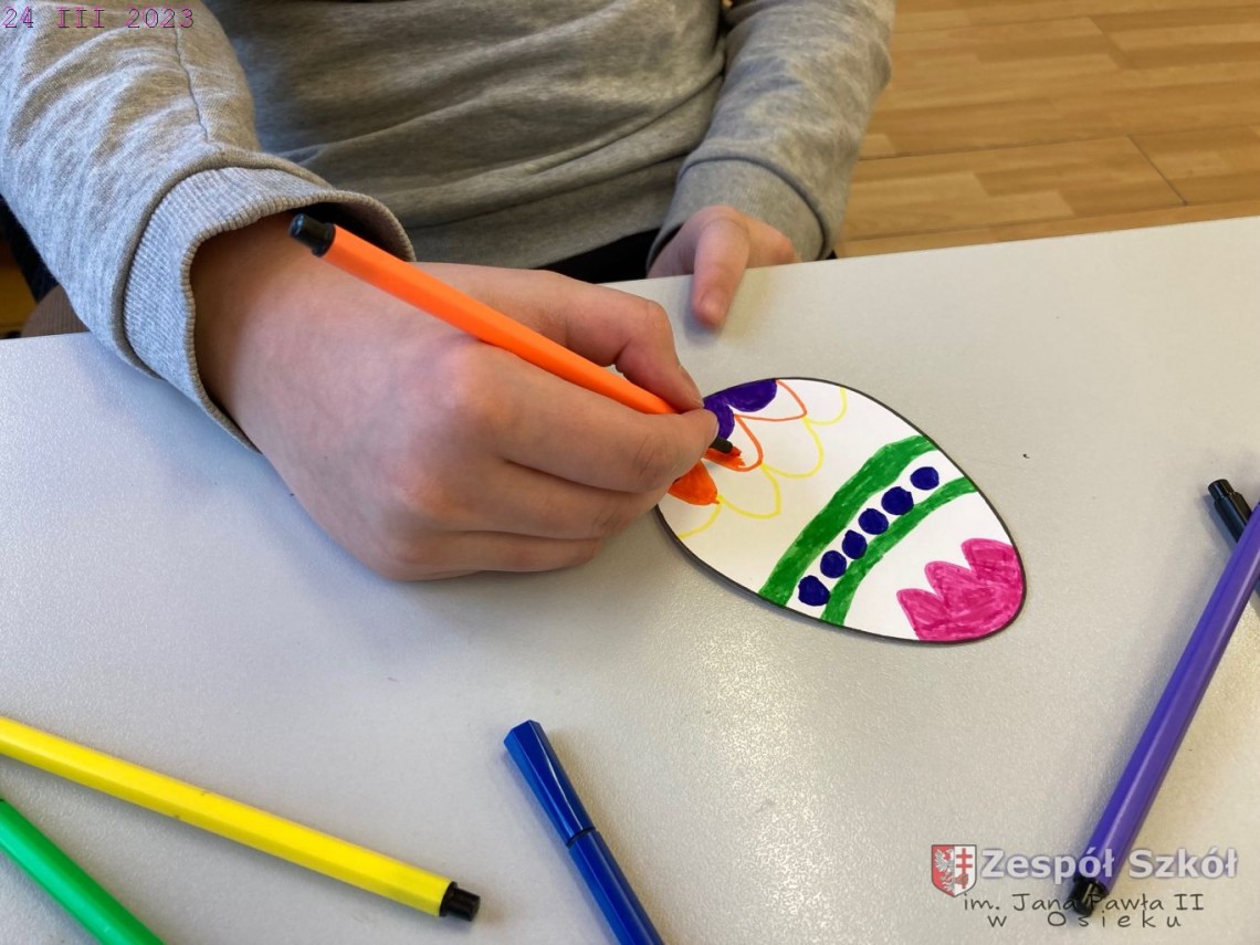 Opis zajęć: W ramach zajęć dydaktyczno-wyrównawczych z języka polskiego uczniowie własnoręcznie wykonali kartki świąteczne. Następnie wspólnie zredagowali życzenia świąteczne z okazji Świat Wielkanocnych i prawidłowo zaadresowali kartkę. Usprawniali również zdolności manualne i artystyczne poprzez: wycinanie, naklejanie, rysowanie, malowanie. Celem zajęć było przypomnienie i utrwalenie prawidłowego napisania życzeń świątecznych, poprawnego zaadresowania korespondencji, a także przypomnienie zwrotów takich jak adresat, nadawca oraz zasad pisowni zwrotów grzecznościowych kierowanych do odbiorcy.