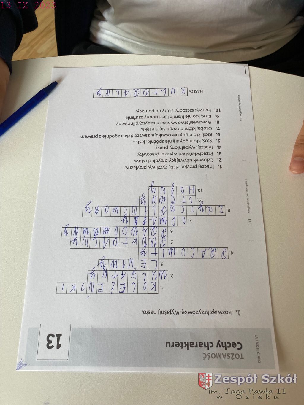 · Krzyżówka – rozwiązywanie krzyżówki, wyjaśnianie hasła.