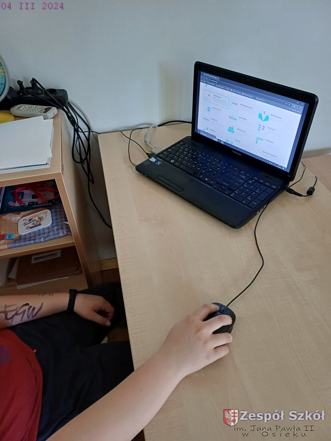 Opis zajęć: Na zajęciach w pracowni specjalistycznej uczeń wykorzystywał dostępne programy komputerowe np. https://wordwall.net.pl/ i https://www.matzoo.pl/ dla kl VI. Podczas zajęć panowała bardzo miła atmosfera sprzyjająca rozwiązywaniu poszczególnych zadań.