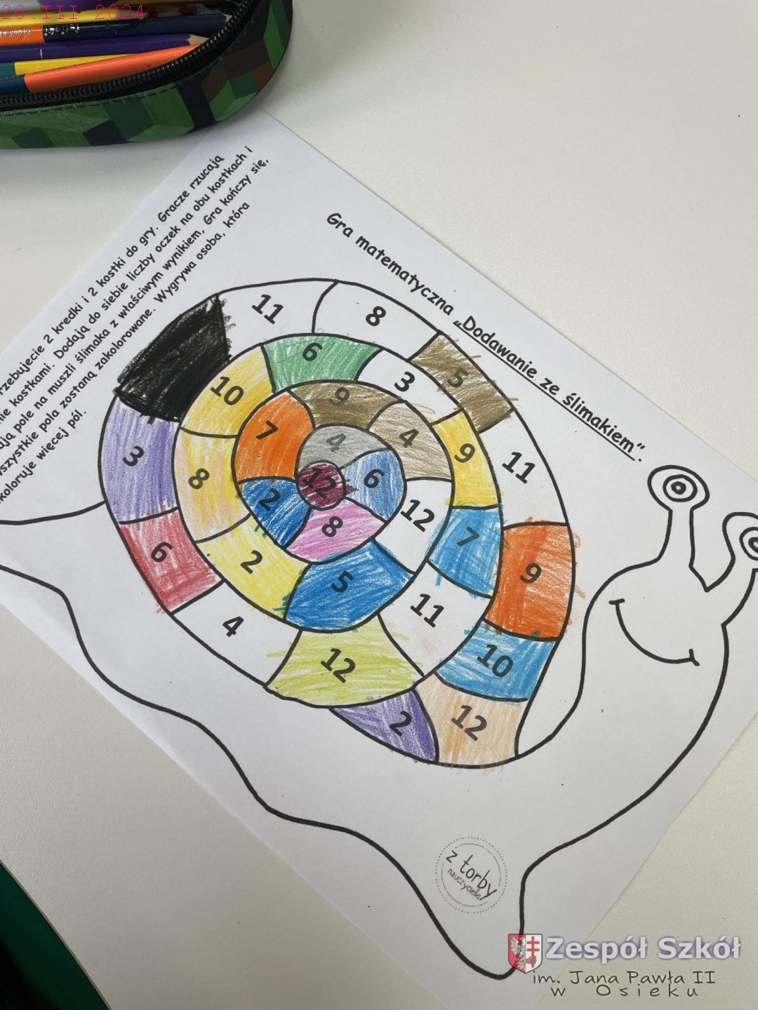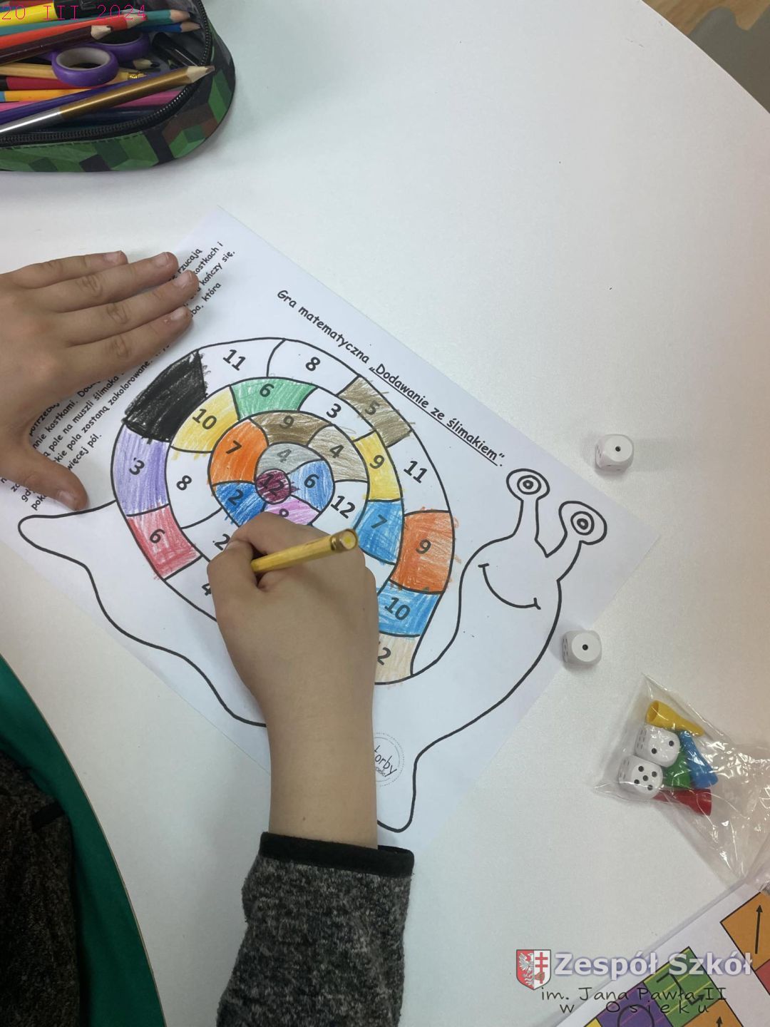 Opis zajęć: W gabinecie zajęć specjalistycznych odbyły się zajęcia edukacyjne indywidualnie z uczniem kl.IV, których głównym celem było rozwijanie myślenia matematyczno – logicznego, koncentracji uwagi oraz motywowanie do pracy.