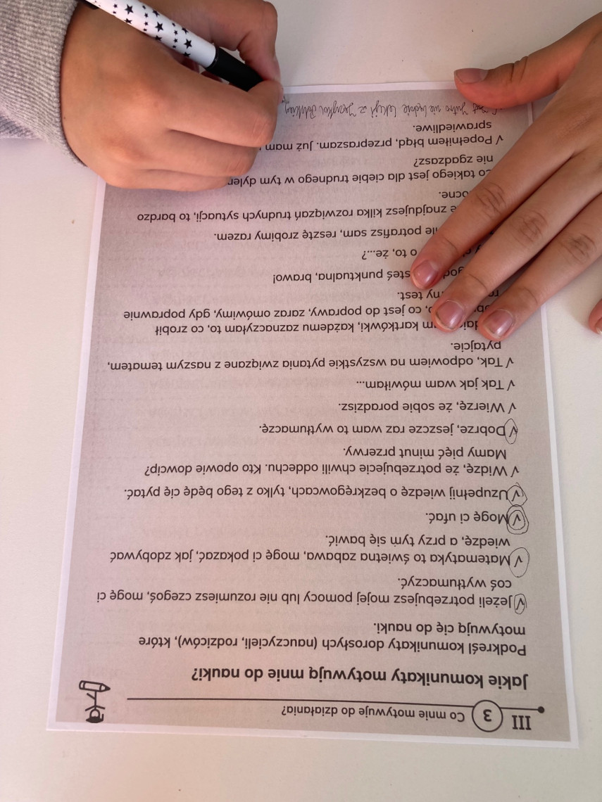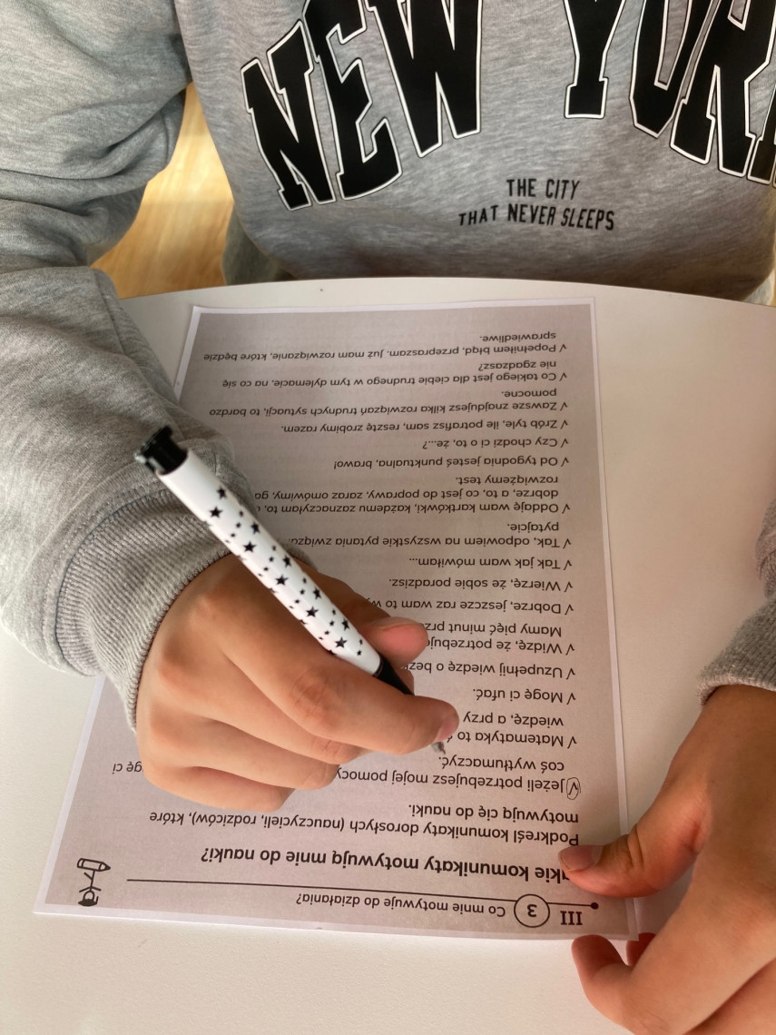 W gabinecie zajęć specjalistycznych odbyły się zajęcia rewalidacyjne, na których uczeń poznał pojęcie motywacji i rodzaje motywacji, wyszukiwał sposoby motywowania do podejmowania różnych działań w szkole, dowiedział się, jakie komunikaty dorosłych (nauczycieli, rodziców) motywują go do nauki. Na zajęciach wykorzystano program multimedialny oraz kartę pracy „Jakie komunikaty motywują mnie do nauki?”.