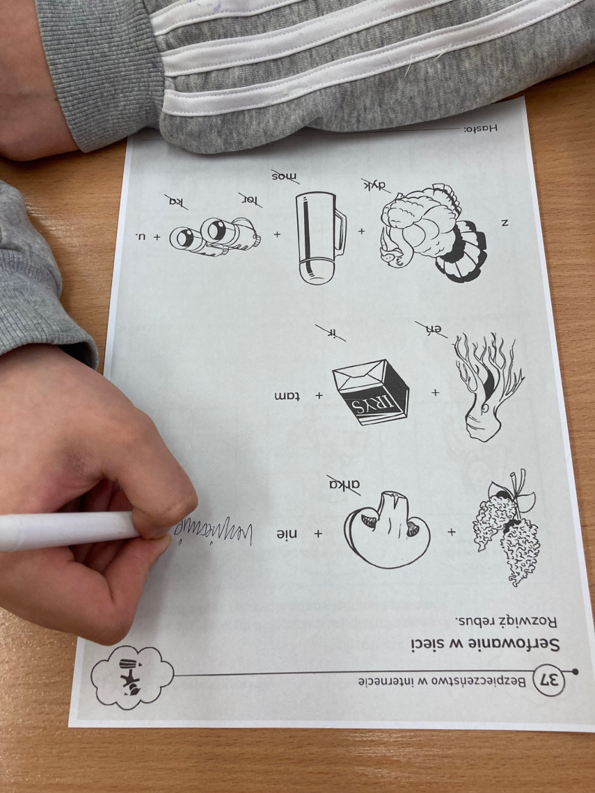 W gabinecie zajęć specjalistycznych odbyły się zajęcia rewalidacyjne, na których uczeń poznał zasady bezpiecznego korzystania z Internetu, wie, że nie wszystkie informacje umieszczone w Internecie są prawdziwe, wie, do kogo zwrócić się z prośbą o pomoc w razie poczucia zagrożenia, zna zasady dobrego zachowania w Internecie (netykiety). Podczas zajęcia pracowano z programem multimedialnym i kartą pracy „Serfowanie w sieci”.