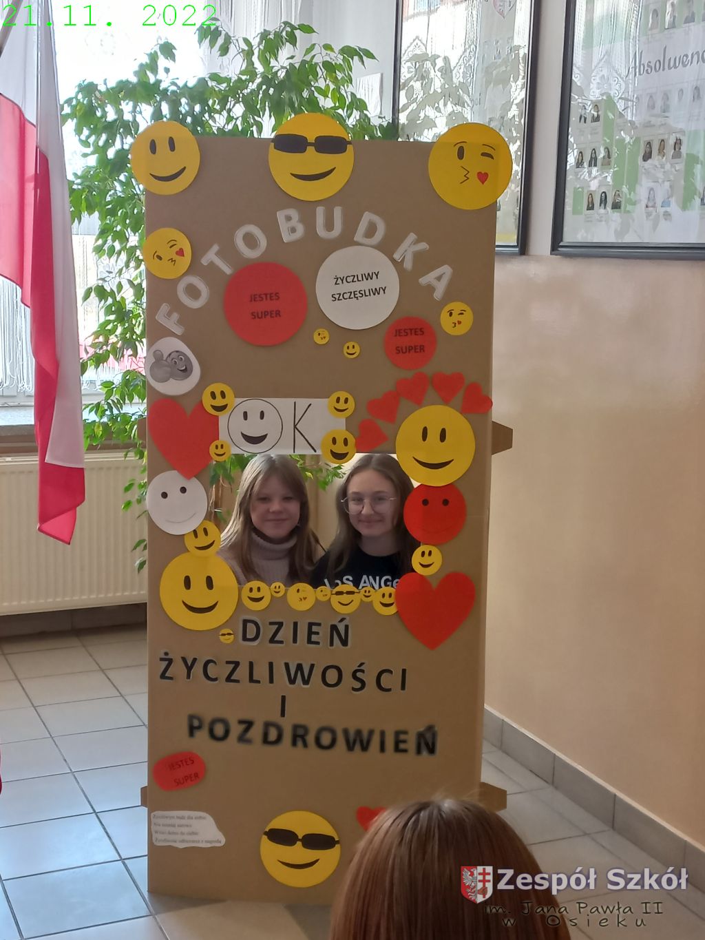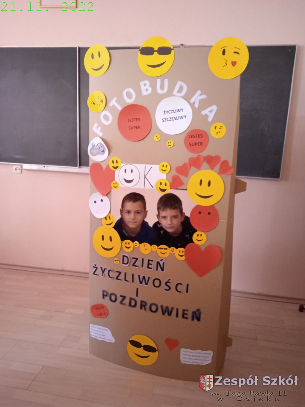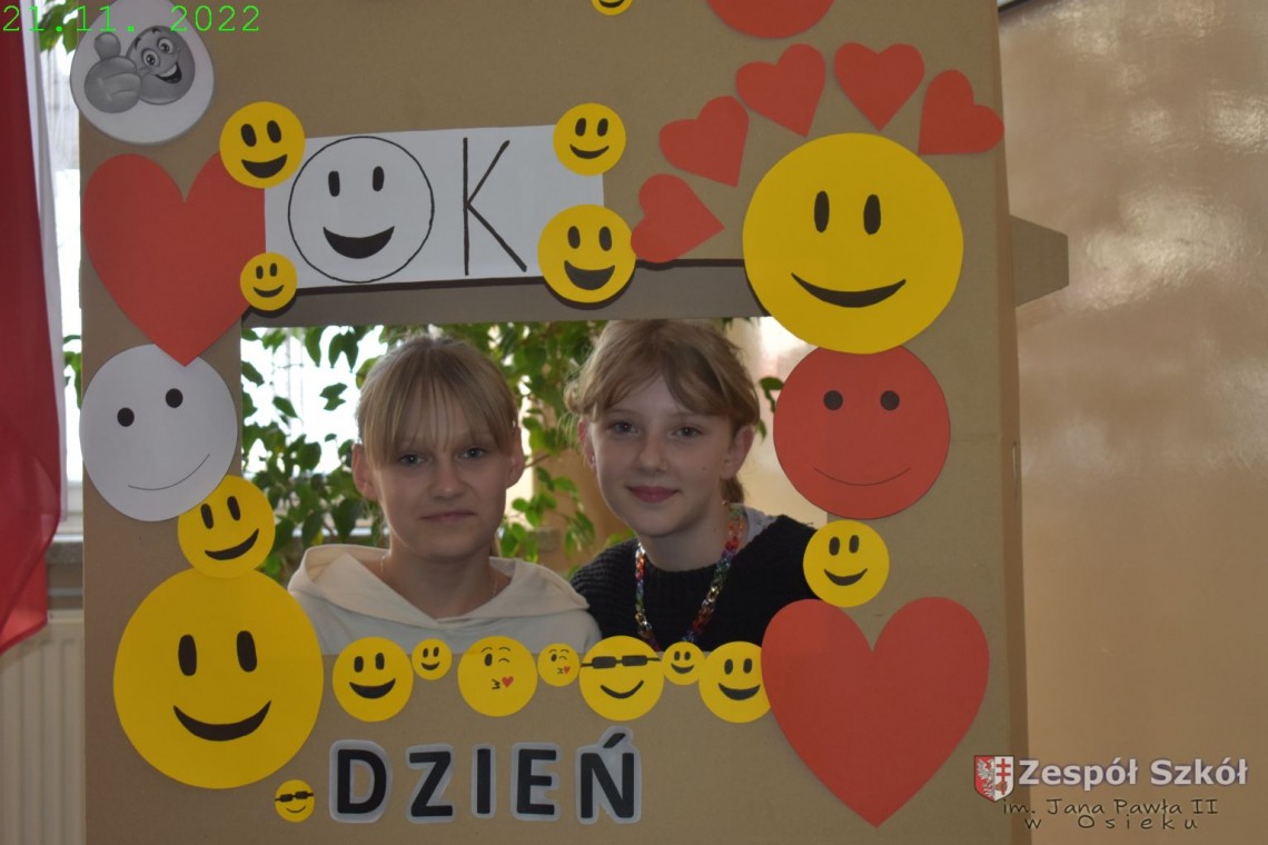 W naszej szkole tego dnia uczniowie pozdrawiali się wzajemnie oraz pracowników szkoły przez radiowęzeł szkolny, jak również zachęcali innych do dzielenia się uśmiechem i dobrym słowem. Najciekawszym punktem obchodów tego Święta była możliwość zrobienia sobie zdjęcia w fotobudce - specjalnie przygotowanej na ten dzień przez wolontariuszy ze Szkolnego Klubu Wolontariuszy.