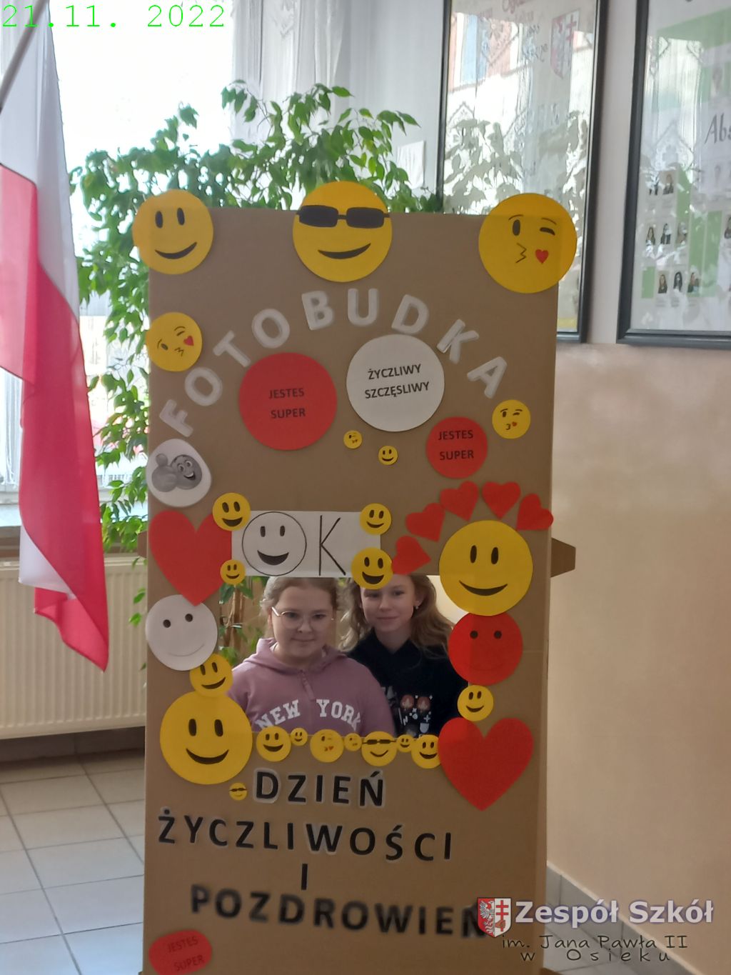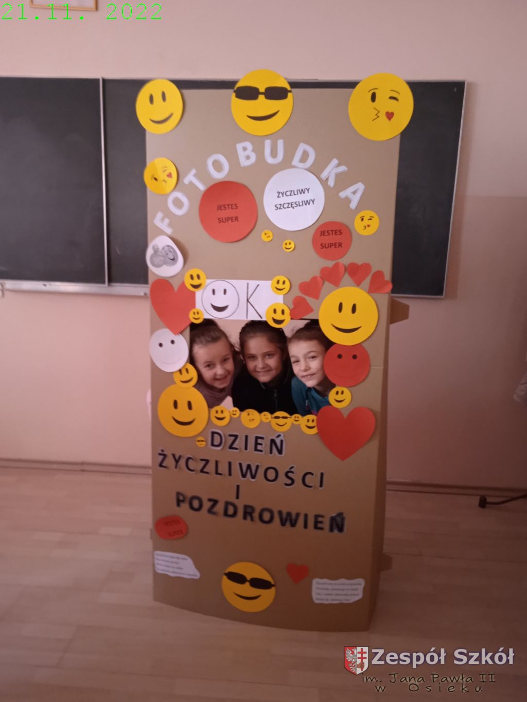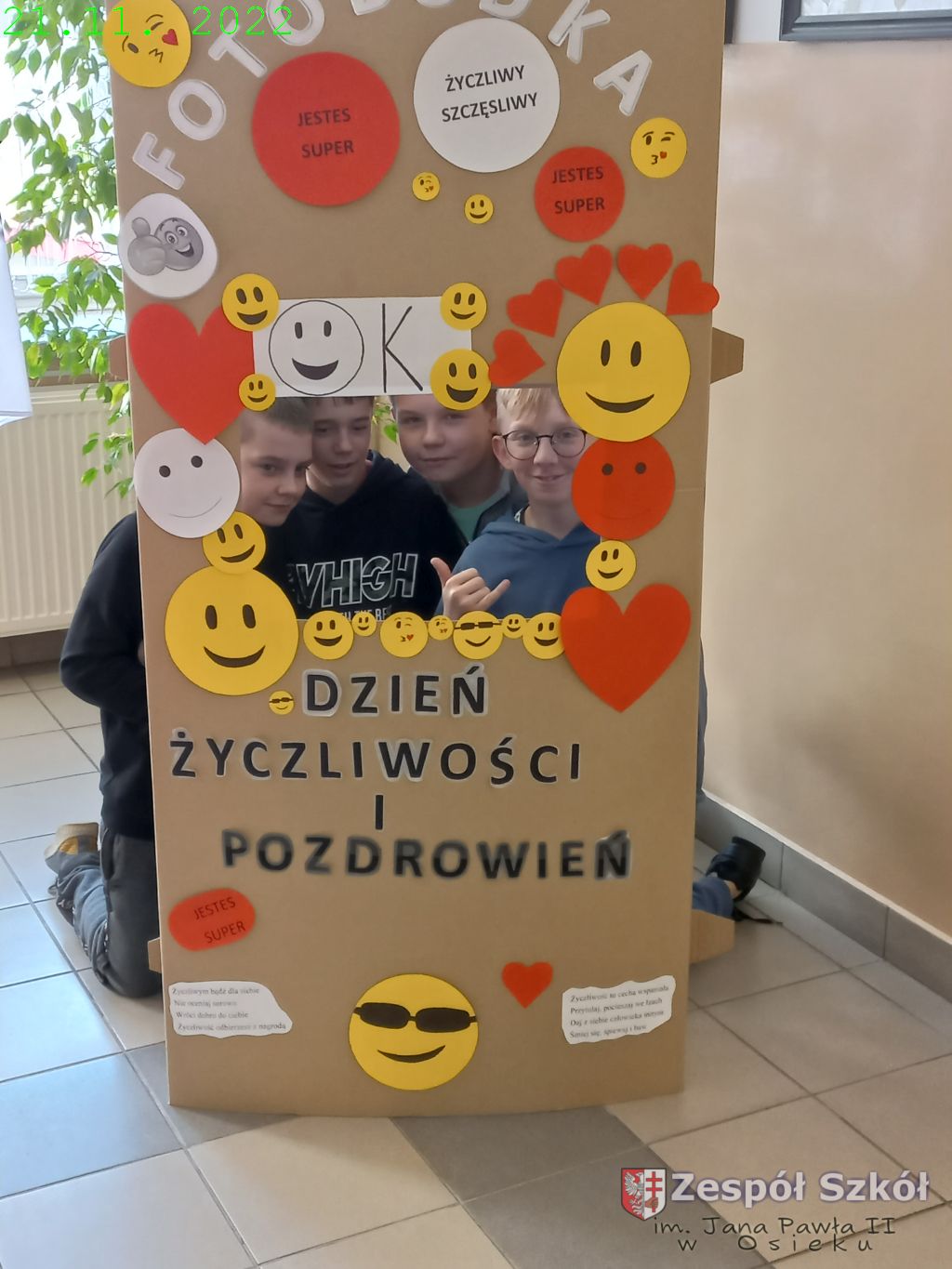 W naszej szkole tego dnia uczniowie pozdrawiali się wzajemnie oraz pracowników szkoły przez radiowęzeł szkolny, jak również zachęcali innych do dzielenia się uśmiechem i dobrym słowem. Najciekawszym punktem obchodów tego Święta była możliwość zrobienia sobie zdjęcia w fotobudce - specjalnie przygotowanej na ten dzień przez wolontariuszy ze Szkolnego Klubu Wolontariuszy.