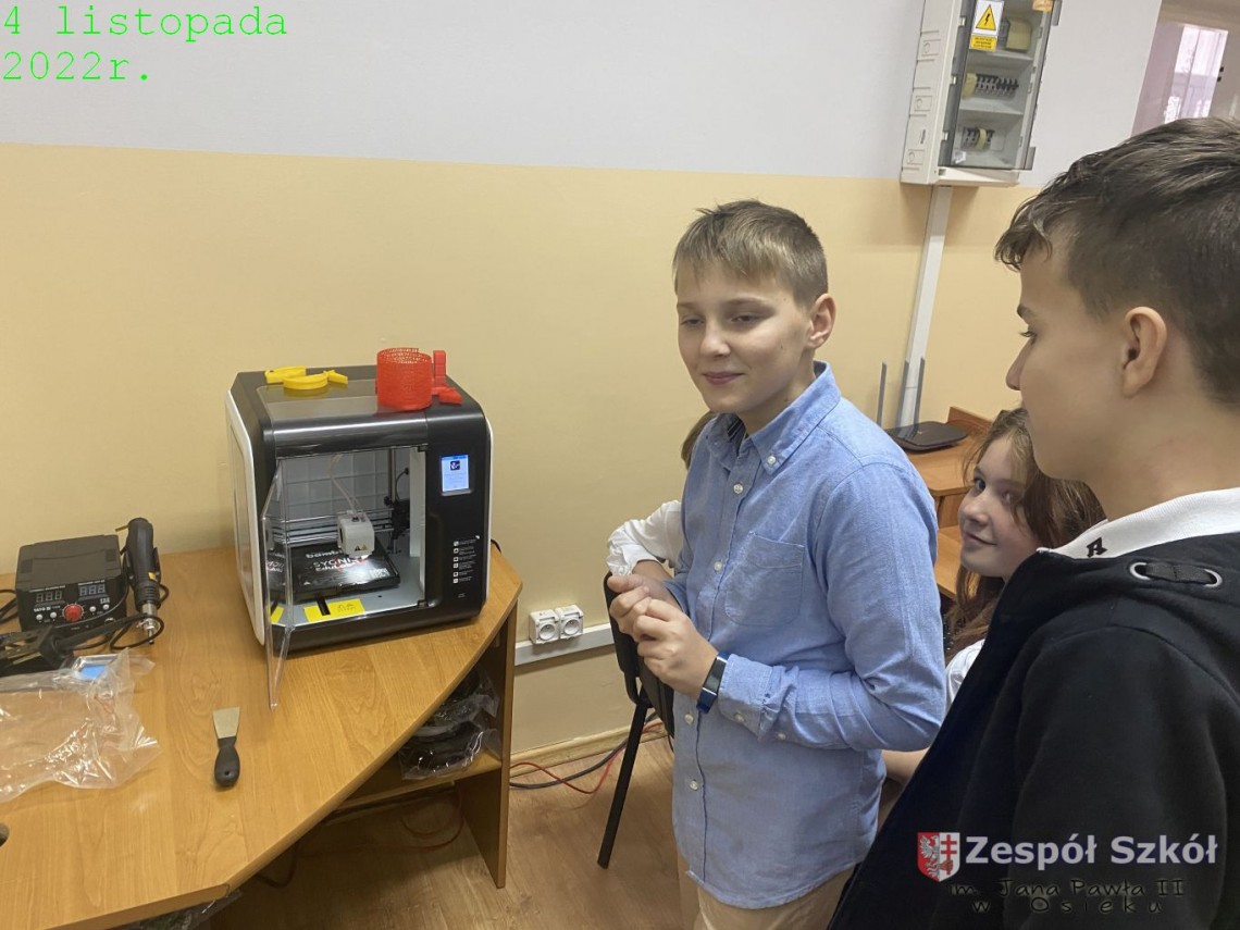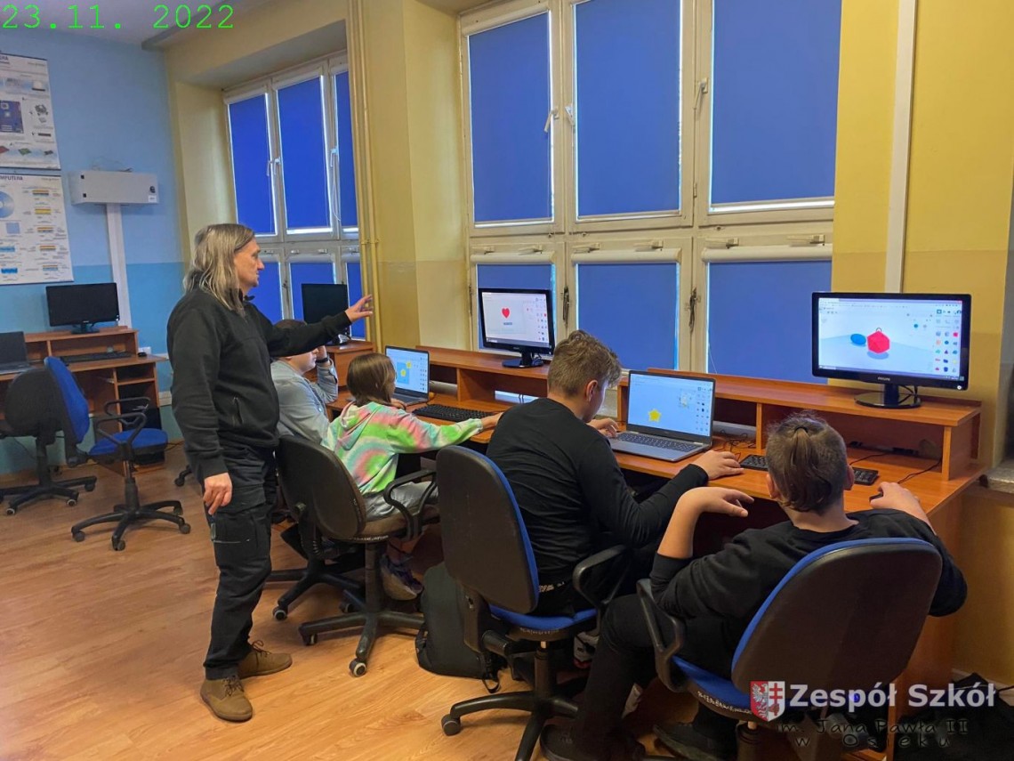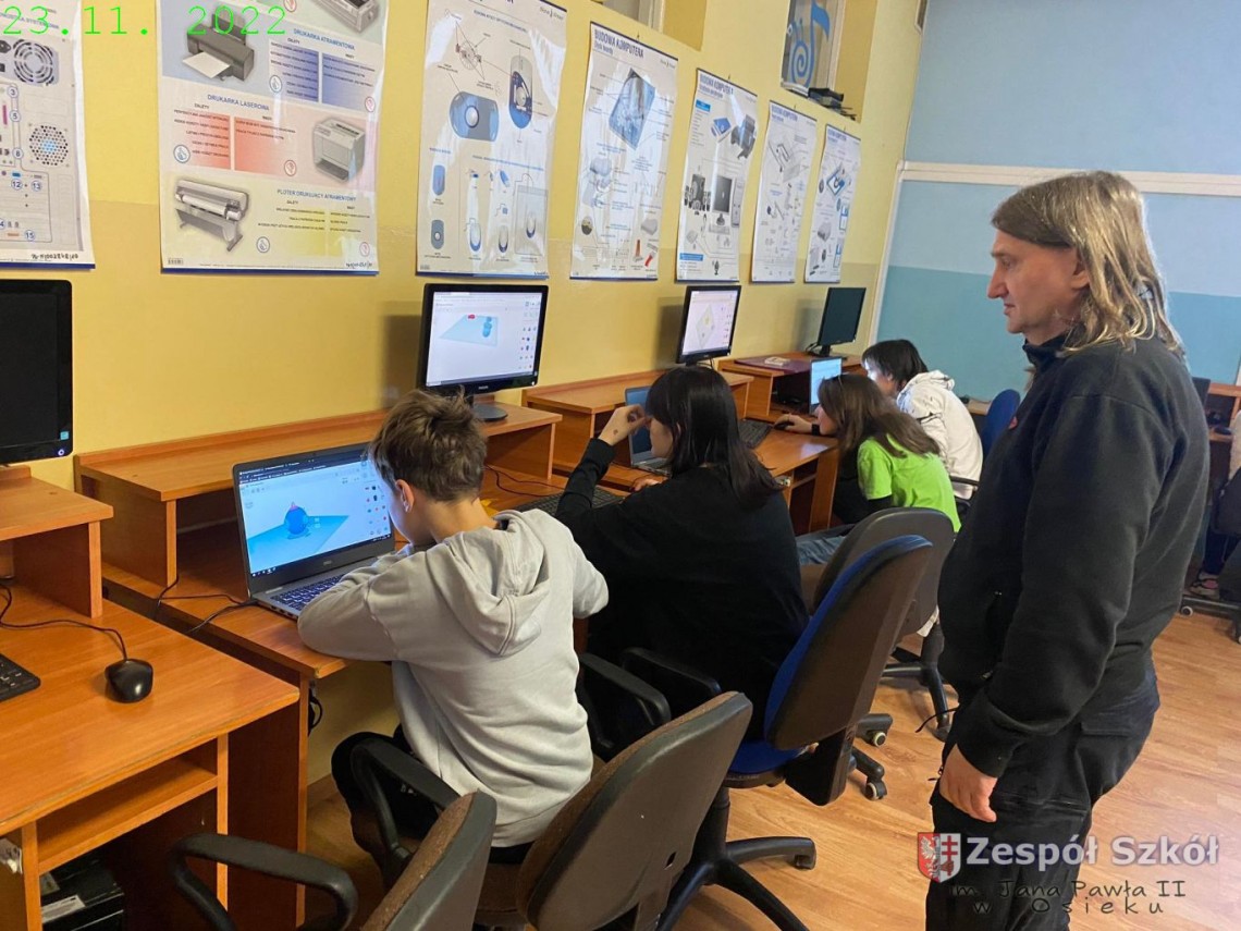 Opis zajęć: W ramach zajęć „DORADZTWA ZAWODOWEGO” w pracowni Robotyki uczniowie zapoznali się z tworzeniem projektu 3D i wydruku oraz zawodem informatyka i nauczyciela.