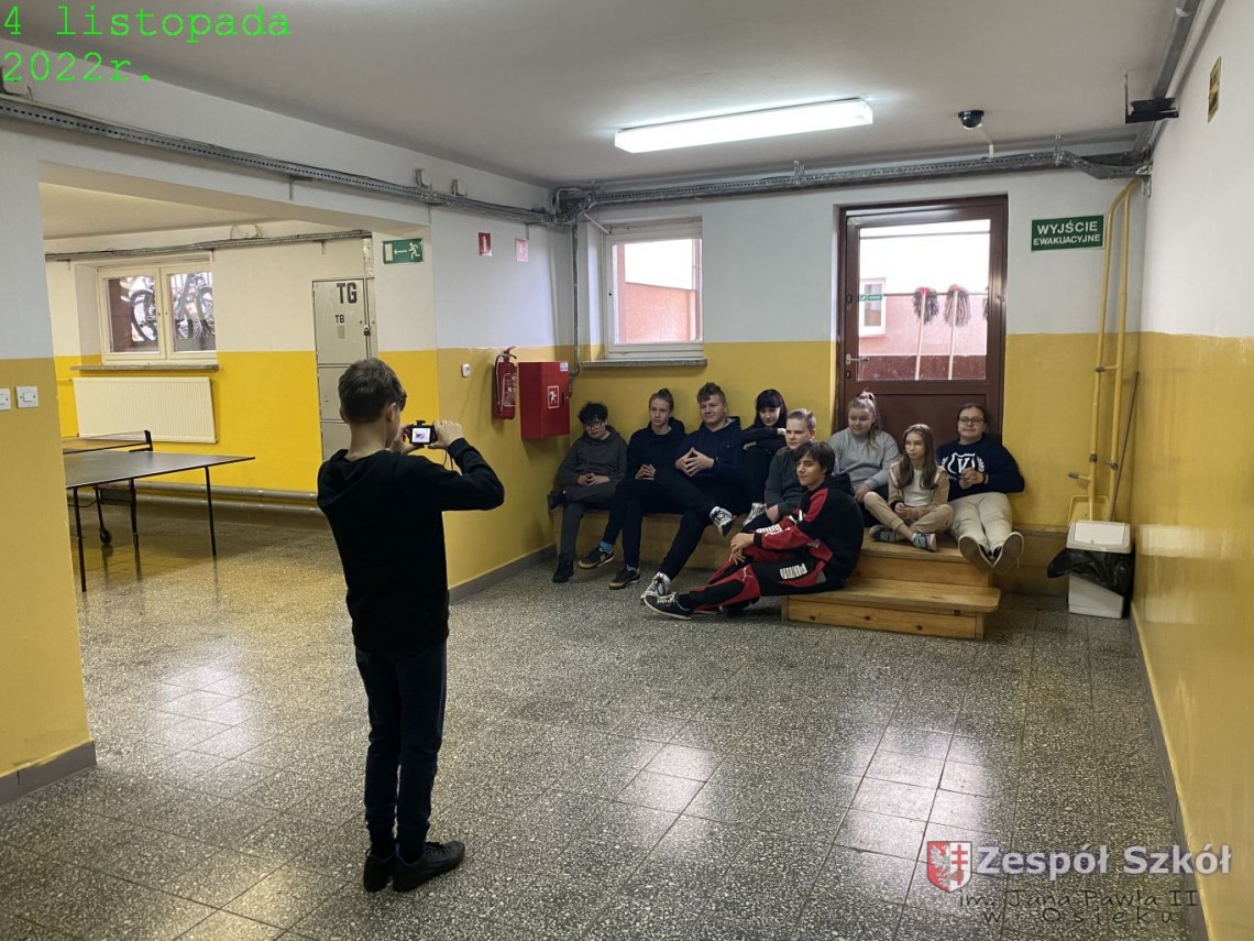Następnie uczniowie zaproponowali najciekawsze miejsca w szkole, które poszliśmy fotografować. Osoba, która zaproponowała miejsce – ustawiała innych i wykonywała zdjęcie. Na następnych zajęciach opublikujemy na naszej stronie zdjęcia i zadanie domowe – krótki opis o sobie wraz z ciekawym zdjęciem.