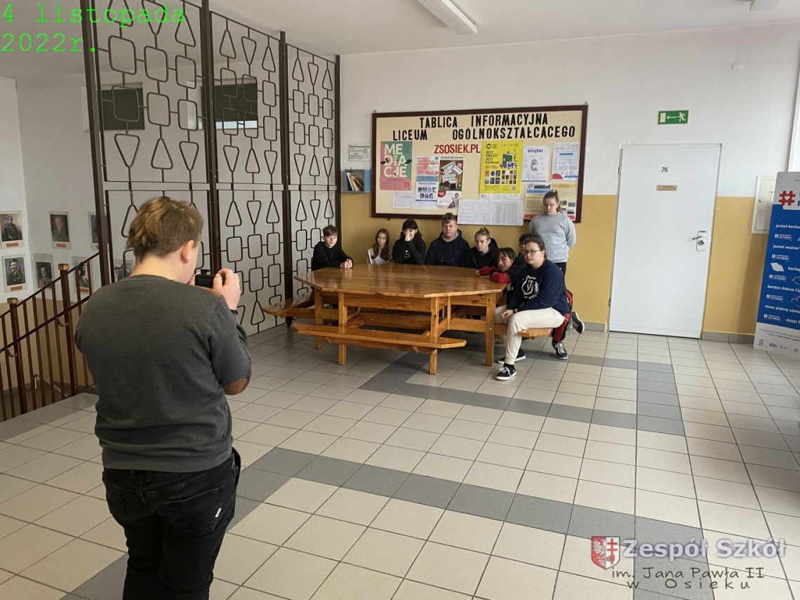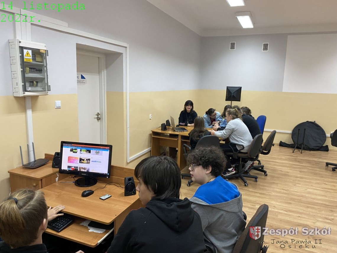 Opis zajęć: Podczas uroczystości Narodowego Święta Niepodległości, chętni uczniowie z klasy VI, za pomocą aparatu CANON PowerShot G7 X Mark III wykorzystali poznane wcześniej zasady filmowania w praktyce. Nagrywali występy uczniów klas I-III podczas akademii. Wyniki ich pracy znajdują się na kanale YT szkoły oraz na stronie szkoły.