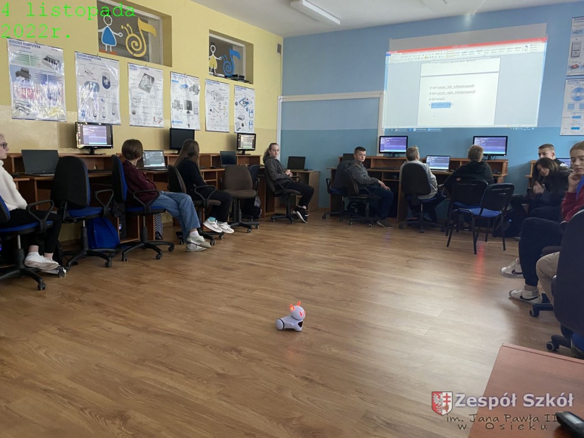 Swoją przygodę z językiem programowania klasa zaczęła od wbudowanego programu „Kwadraty” – musieli przerobić go do podróży „po prostokącie” – większość klasy wykonała to zadanie bezbłędnie. Cięższą próbą była podróż „po trójkącie równobocznym” – tu udał się kilku osobom – którzy otrzymali za zadanie oceny celujące.