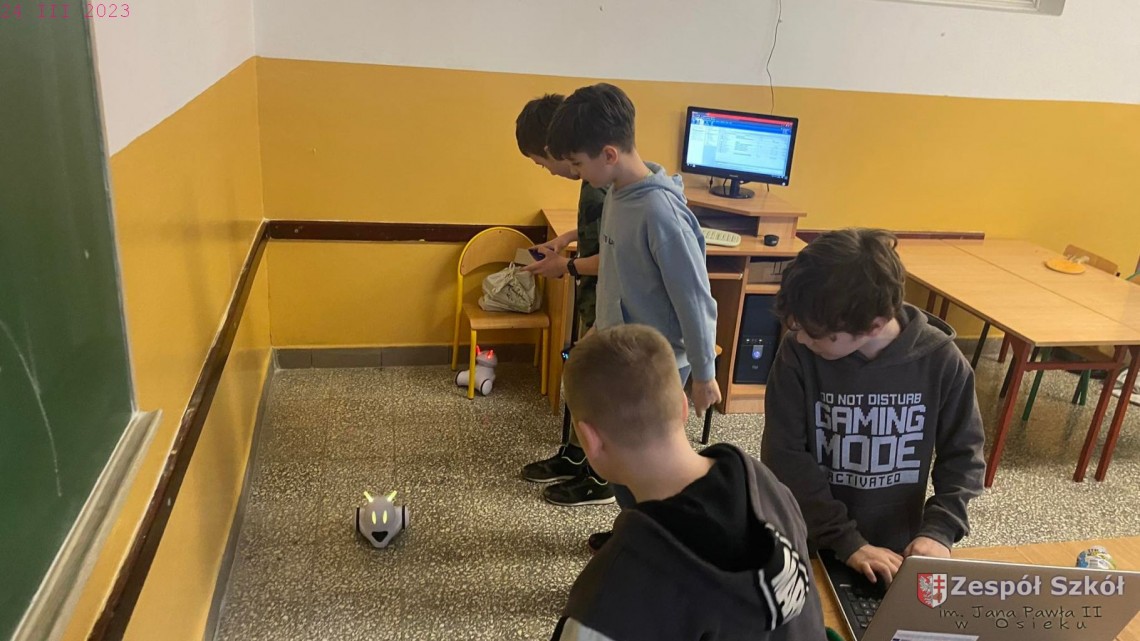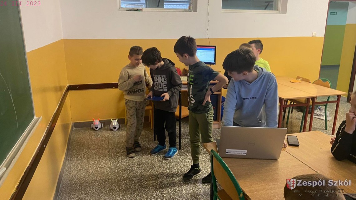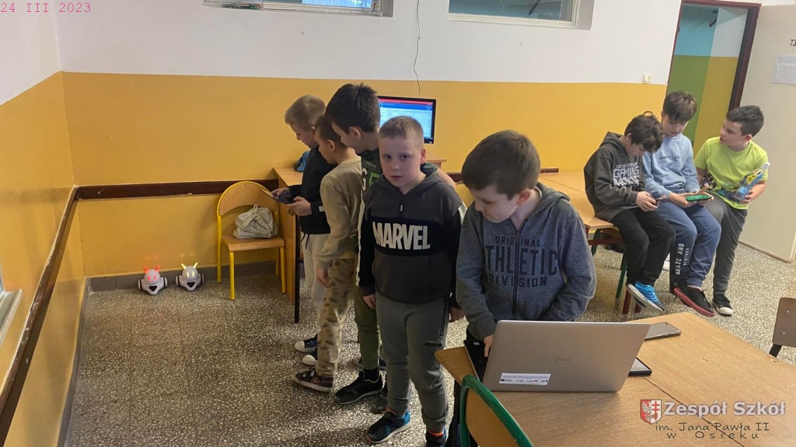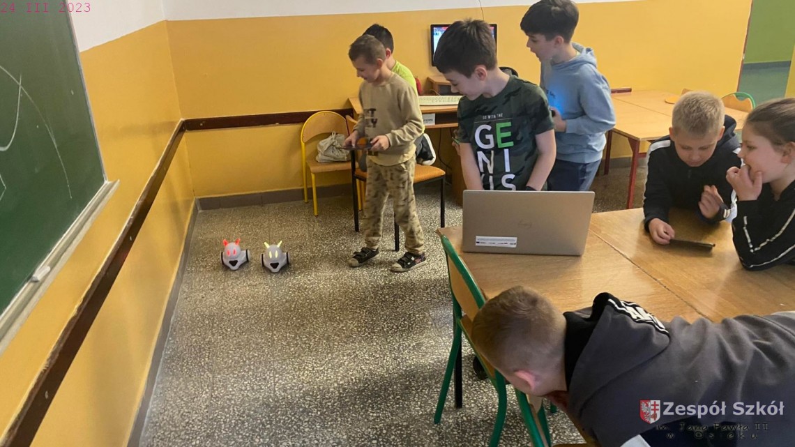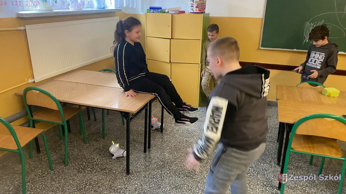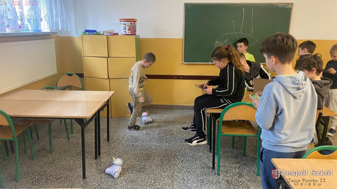 Opis zajęć: Z okazji I Dnia Wiosny na zajęciach informatycznych postanowiliśmy z klasą IV poznać roboty Photon. Uczniowie podzieleni na 3 grupy budowali tory przeszkód i za pomocą laptopa, komputera PC i tabletu poruszali się robotami. Zwycięzcy mogli sobie wybrać metodę sterowania robotem oraz ułożyć tor przeszkód.