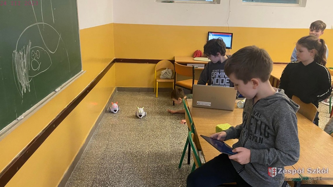 Opis zajęć: Uczniowie na zajęciach świetlicowych podjęli się nauki sterowania robotem Photon. Z pomocą oprogramowania wgranego na tablet i laptop, po wysłuchaniu krótkiej instrukcji i zasad pracy z robotem, zaczęła się walka o sterowanie nim.