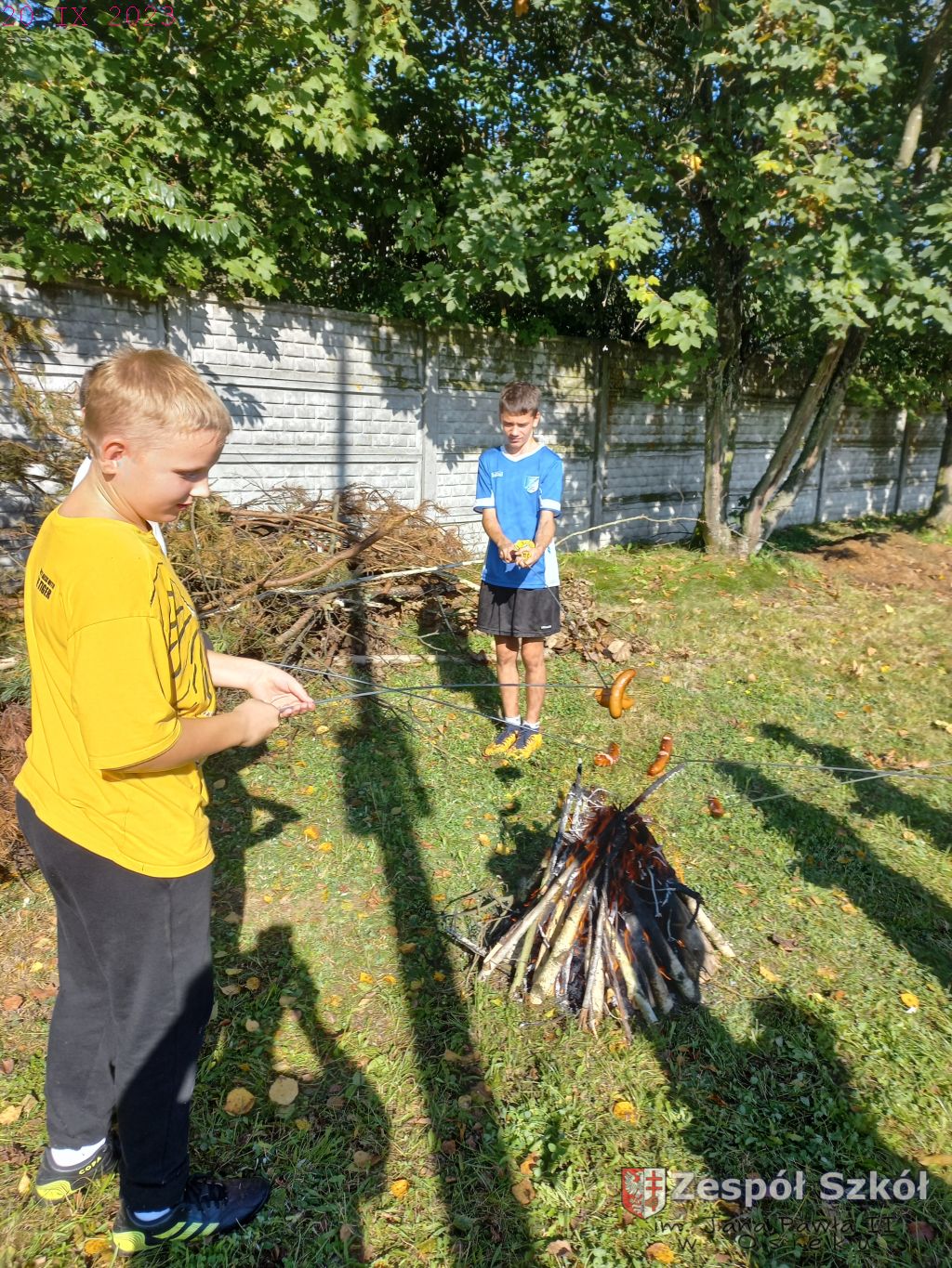 Opis zajęć: Dnia 20.09.2023 r. korzystając z pięknej pogody, uczniowie klasy VI Zespołu Szkół im. Jana Pawła II w Osieku wybrali się z opiekunami na ognisko integracyjne. Droga ze szkoły na stadion MKS Piast Osiek została przebyta pieszo, podziwiając piękno okolicy. Po dotarciu na miejsce przyszła pora na krótki odpoczynek, po którym z niespożytą energią uczniowie grali w piłkę nożną i badmintona. Posiliwszy się pieczoną kiełbaską, niektórzy wybrali się na spacer po lesie. Czas szybko upłynął i w dobrym humorze wszyscy wrócili do szkoły. Podczas wycieczki były robione pamiątkowe zdjęcia z wykorzystaniem sprzętu „Laboratoria Przyszłości” - aparat CANON Power Shot G7.