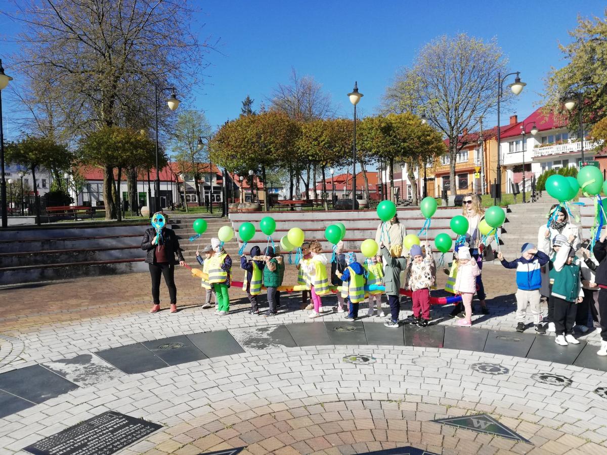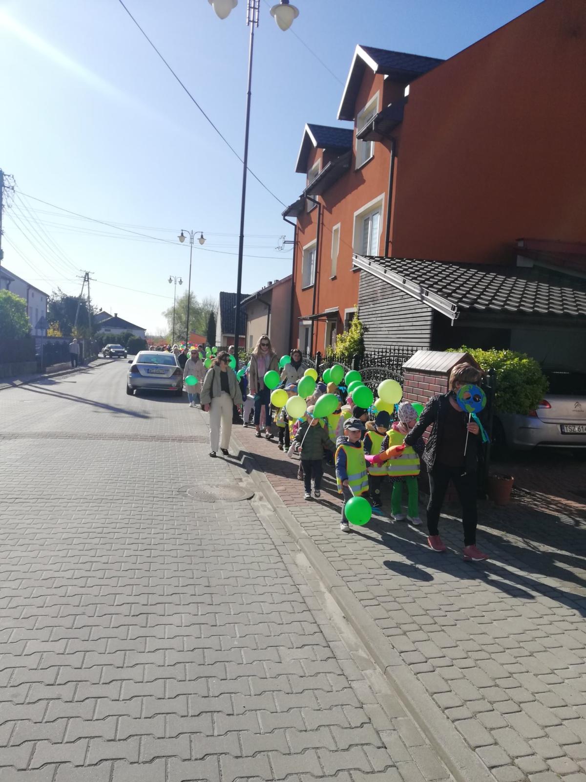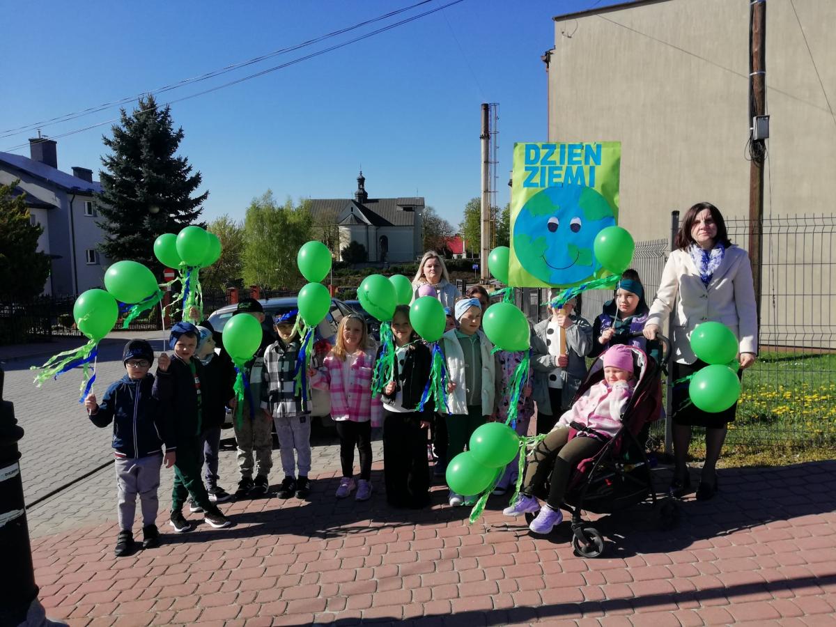 22 kwietnia przedszkolaki ze wszystkich grup wiekowych obchodziły Dzień Ziemi. Punktem kulminacyjnym był przemarsz przedszkolaków barwnym pochodem ulicami naszego miasta z zielonymi balonami .W grupach również odbyły się pogadanki, warsztaty, dzieci wykonywały prace plastyczne związane z tym świętem. Przedszkolaki wiedzą jak dbać o naszą planetę i dlaczego to jest takie ważne.