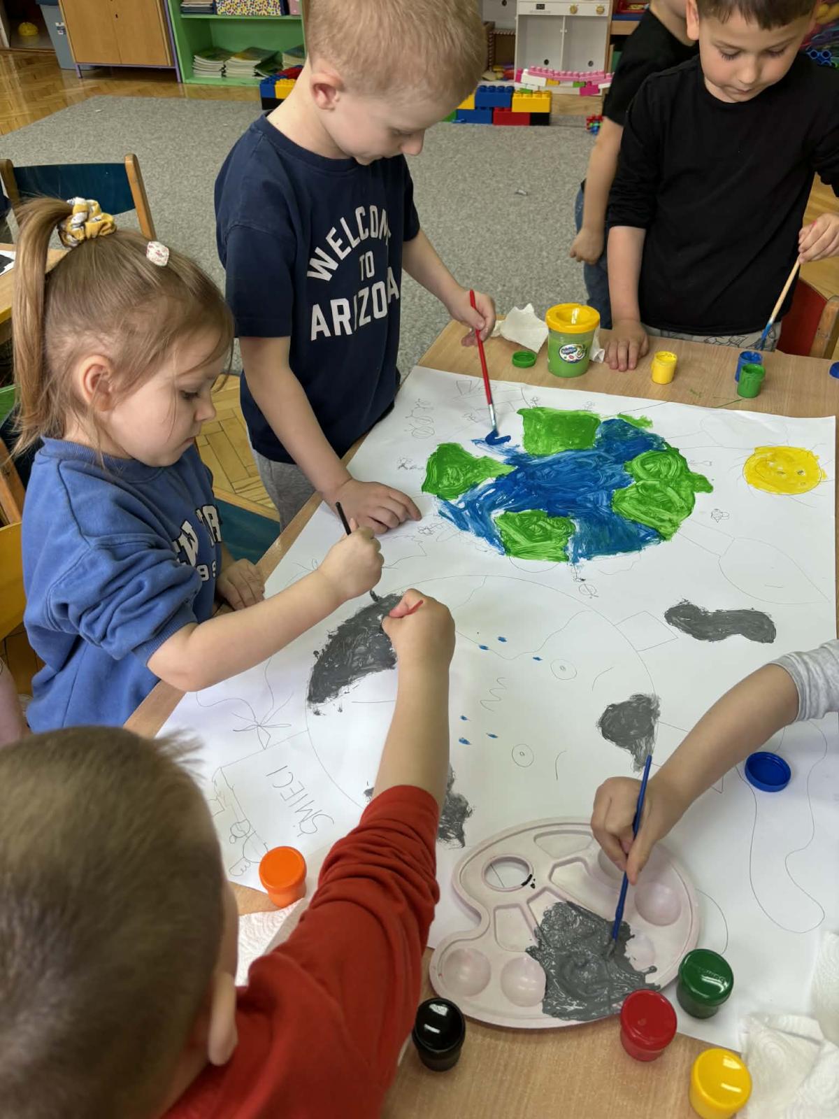 Podczas zajęć szczególną uwagę poświęcono tematyce szkodliwości palenia papierosów. Dzieci dowiedziały się, że dym tytoniowy ma negatywny wpływ na zdrowie człowieka, zarówno osób palących, jak i przebywających w ich otoczeniu. Zwrócono uwagę na to, że wdychanie dymu może prowadzić do różnych problemów zdrowotnych oraz zanieczyszcza powietrze. Dzieci wykonały także plakaty o czystym powietrzu, przedstawiając sposoby dbania o środowisko i zdrowe otoczenie. Wspólnie zastanawiały się, co może je zanieczyszczać, np. dym z kominów, spaliny samochodów czy palenie śmieci. Dzieci oglądały obrazki przedstawiające czyste i brudne środowisko oraz uczyły się, jak można dbać o czyste powietrze. Dodatkowo nauczyły się piosenki o „Dinku”. Zajęcia pomogły dzieciom zrozumieć, jak ważne jest dbanie o środowisko i co każdy z nas może zrobić, aby powietrze było czyste.