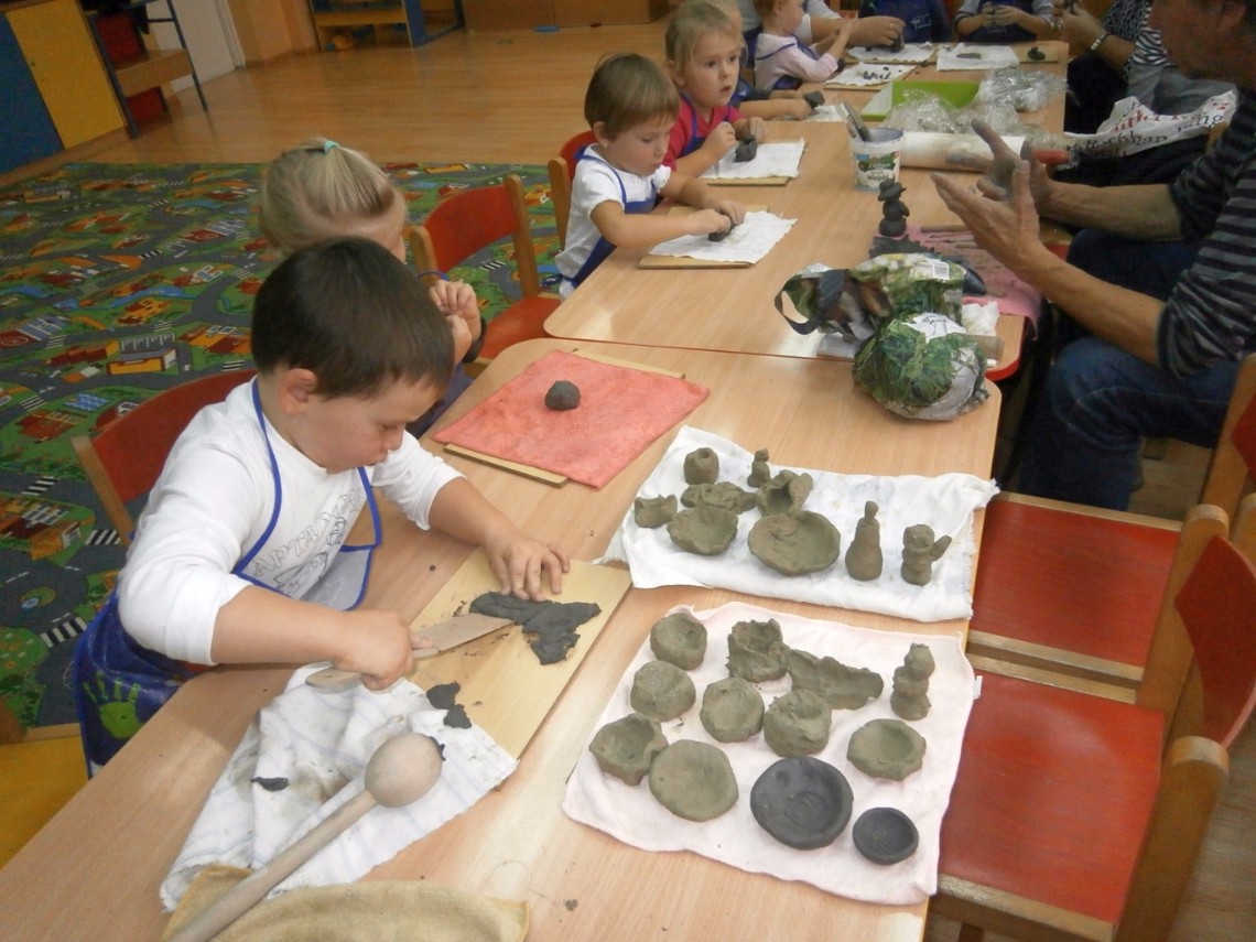 Ponieważ dziecko w wieku przedszkolnym rozwija się poprzez zabawę warsztaty takie przynoszą wymierne efekty. Praca z gliną bardzo dobrze wpływa na harmonijny rozwój dzieci. Wycisza, uczy skupienia i cierpliwości. Zgniatanie, ugniatanie i wałkowanie gliny zaspokaja naturalną potrzebę dziecka, przygotowuje w ten sposób rękę do nauki pisania. Znakomicie stymuluje i rozwija układ nerwowy. Rozwija wyobraźnię, zdolności manualne i oczywiście jest wspaniałą zabawą.
