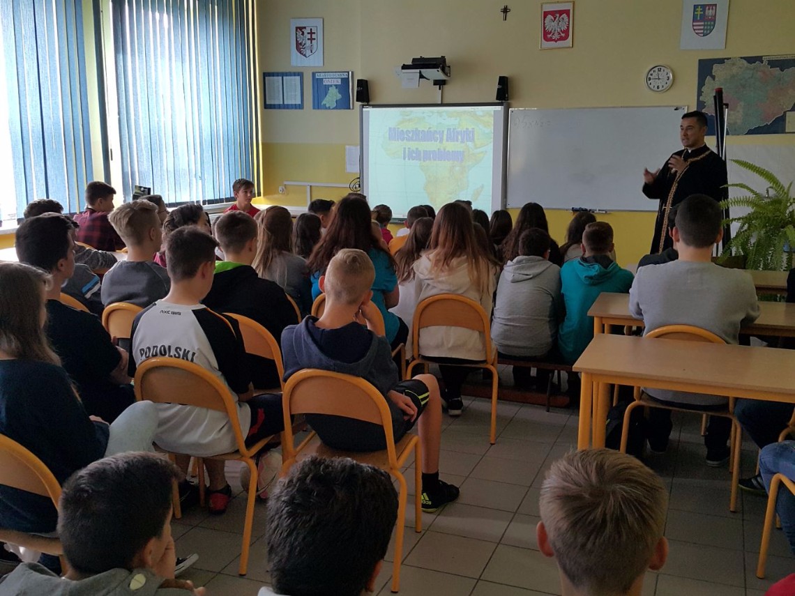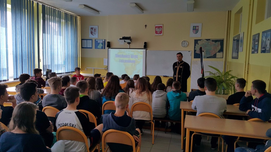 Drukuj Powrót do poprzedniej strony Archiwum zdjęć 26.10.2016 10:30 Treść W dniu 20.10.2016 r. spotkanie misyjne ,,Mieszkańcy Afryki i ich problemy" z uczniami klas gimnazjalnych prowadził Ks. Daniel Koryciński (Dyrektor Muzeum Księdza Kardynała Adama Kozłowieckiego w Hucie Komorowskiej).