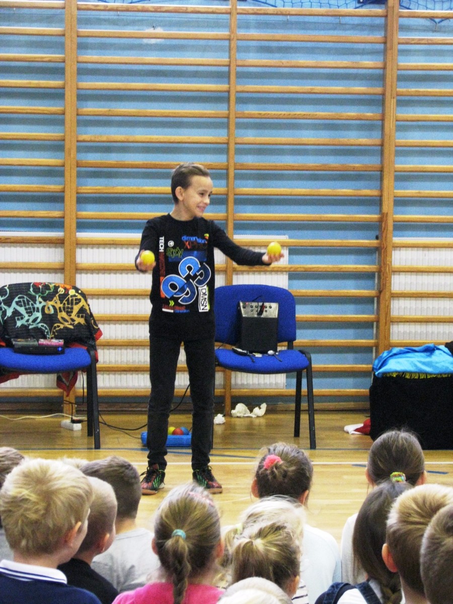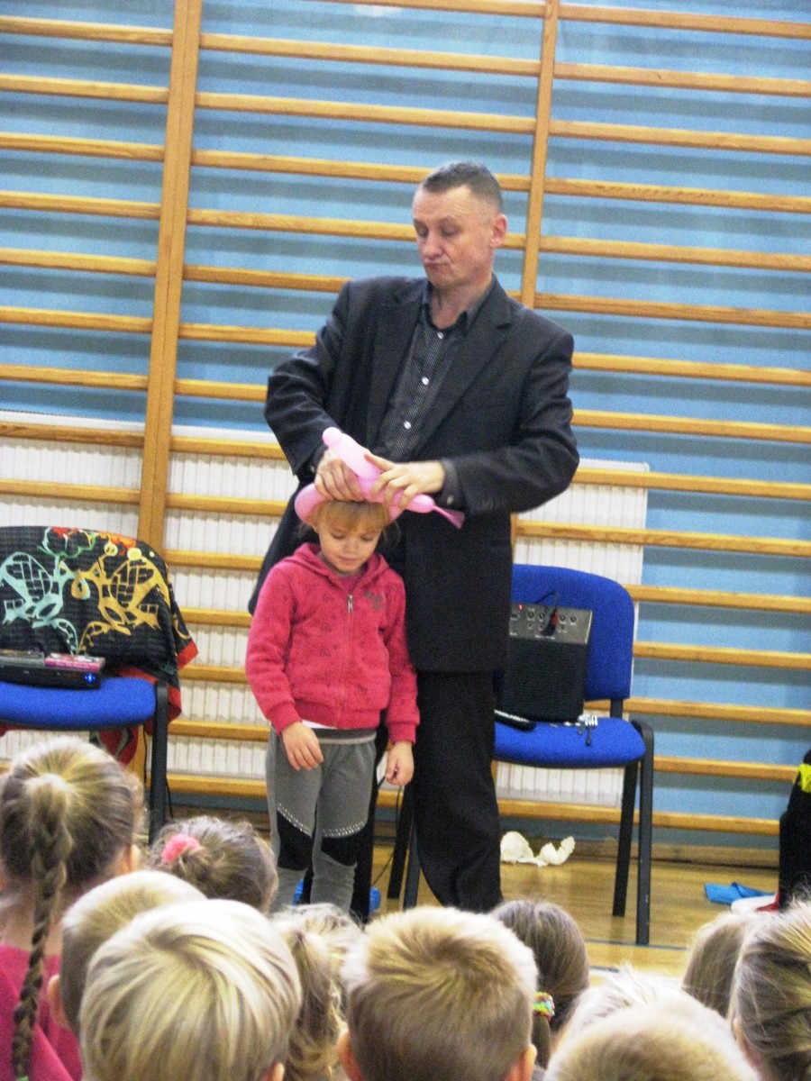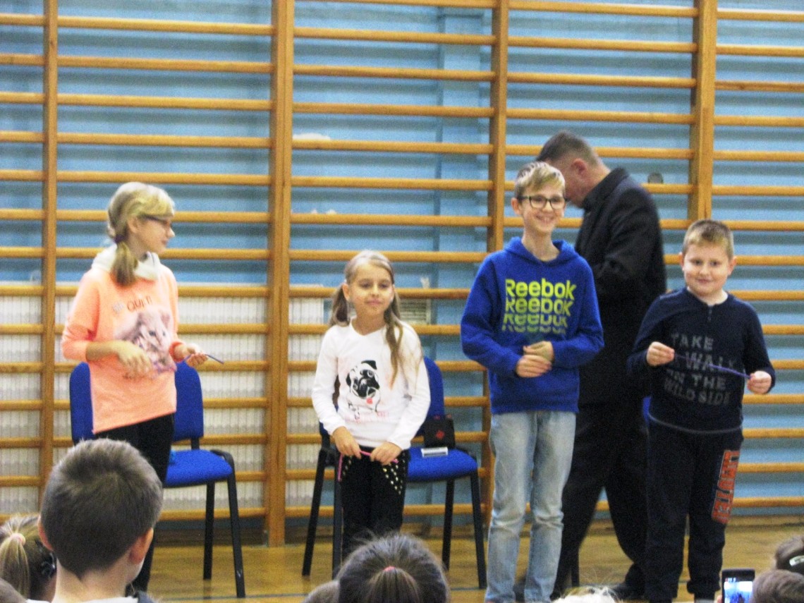 20 października 2016r. klasy I – VI uczestniczyły w pokazie sztuczek wykonanych przez iluzjonistę pana Ryszarda Goclona. Zaprezentował on program „Magic Show”, podczas którego mogliśmy podziwiać magiczne triki, przy użyciu kart, sznurków, kół i piłek. Do asystowania przy wykonywaniu różnorodnych trików zaangażował wybranych uczniów.