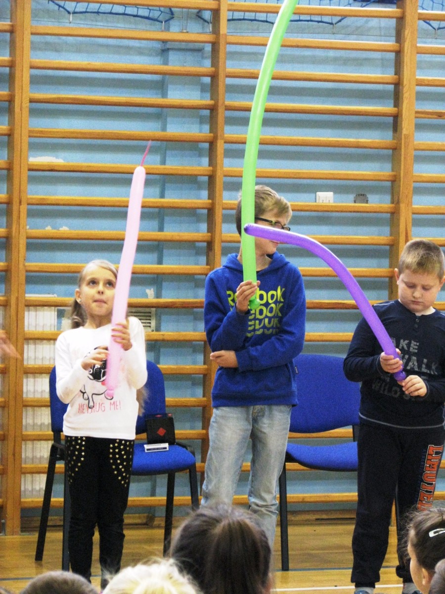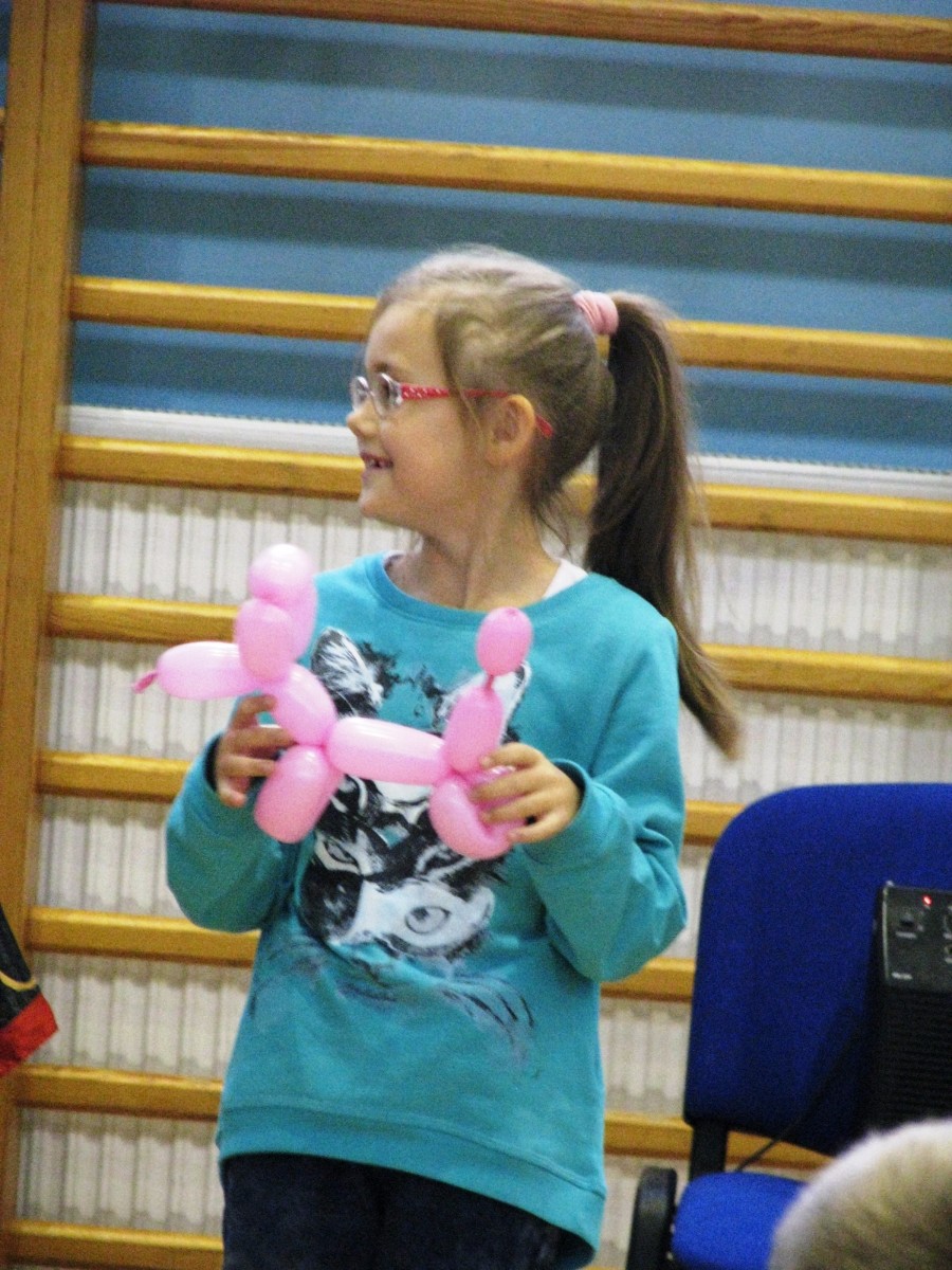 Wszystkie dzieci były bardzo zadowolone ze spotkania. Na koniec otrzymały od czarodzieja zwierzątka z kolorowych balonów.