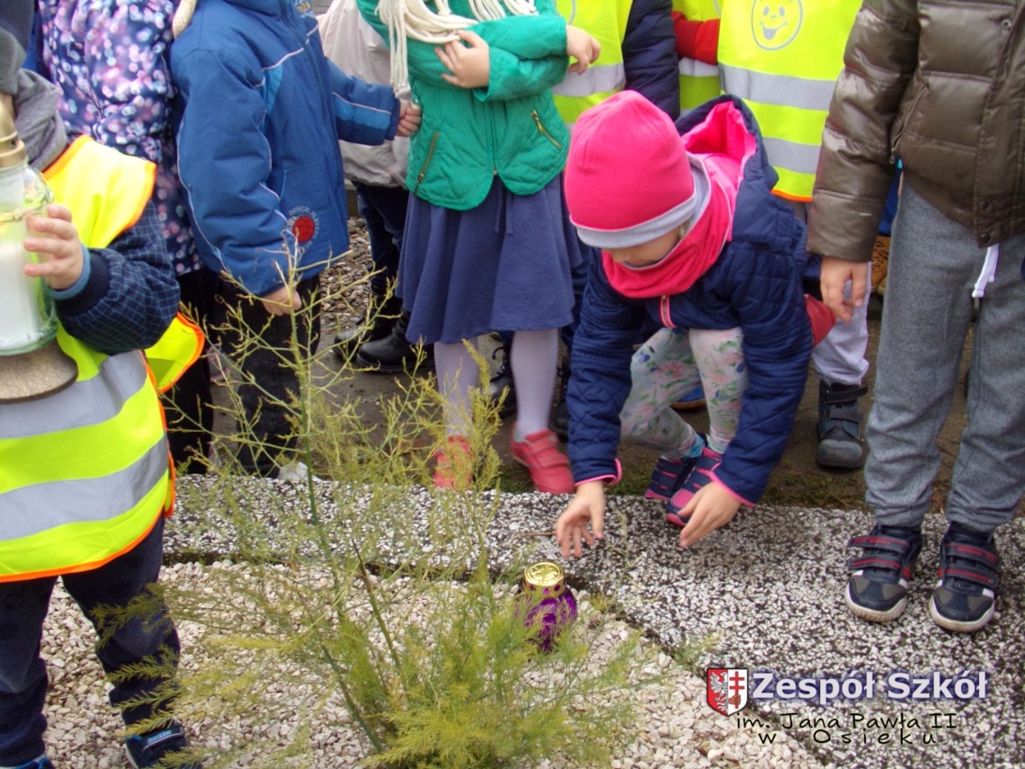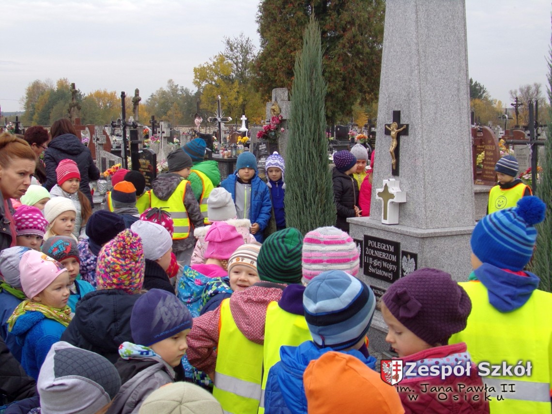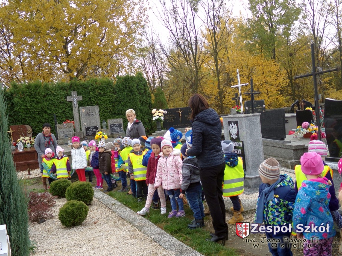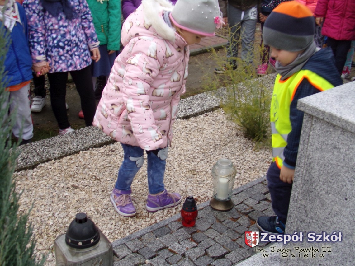 W dniu 25.10.2016 r. przedszkolaki wraz z wychowawczyniami wybrały się na spacer, na cmentarz, aby zapalić znicze na Grobie Nieznanego Żołnierza. Celem spaceru było oddanie hołdu żołnierzom, którzy zginęli za naszą wolność.